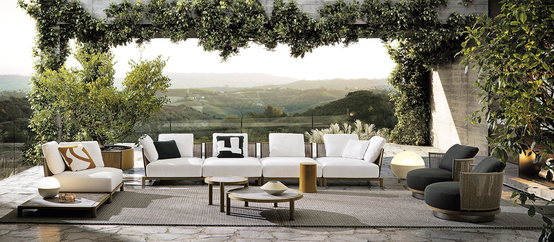 Minotti产品系列体现居住空间的革新理念,用全新方式诠释家居空间,在室内和户外玩味相因相生的意境。