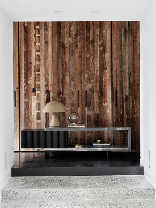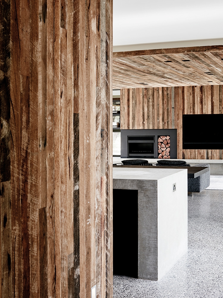 室内设计采用低调而又别具巧思的设计方案,白色墙壁搭配外露的混凝土元素,深色木质镶板用当地的回收木材制成。