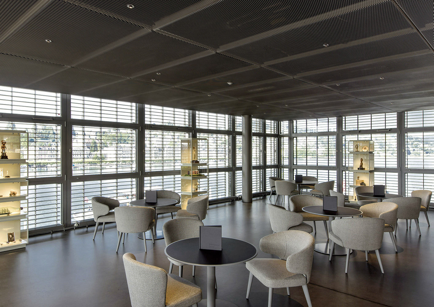 琉森艺术博物馆位于琉森文化和会议中心内部,这座多功能建筑由法国著名建筑师 Jean Nouvel 设计,内设一个音乐厅及众多可用于展览和文化活动的大厅。作为集会空间,大厅为参观者营造私密温馨的氛围,亦令享用咖啡和逛书店成为可能。大厅布置由瑞士艺术家 Urs Luthi 负责,呈现十分考究的趣味风格,内部装饰有舒适优雅的 Aston Lounge 小号靠椅与 Bellagio 茶几。