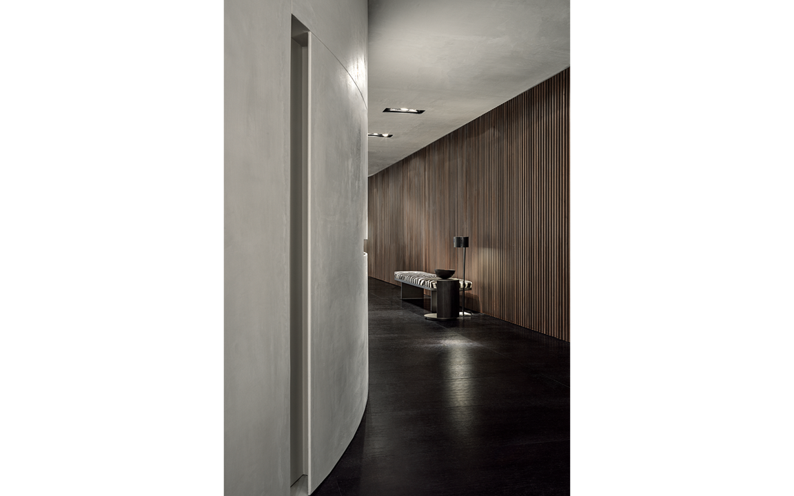 一系列意想不到的元素让这一空间拥有别具一格的魅力,空间分为两个区域,直达天花板的宽大弧形开口,迎接访客进入中心区域。