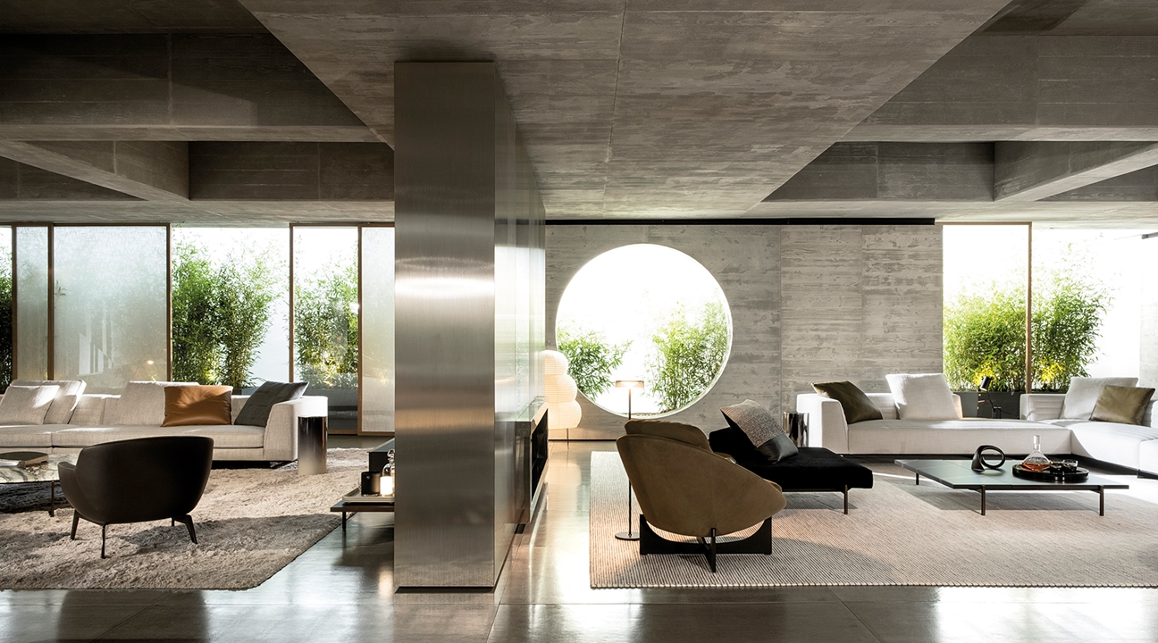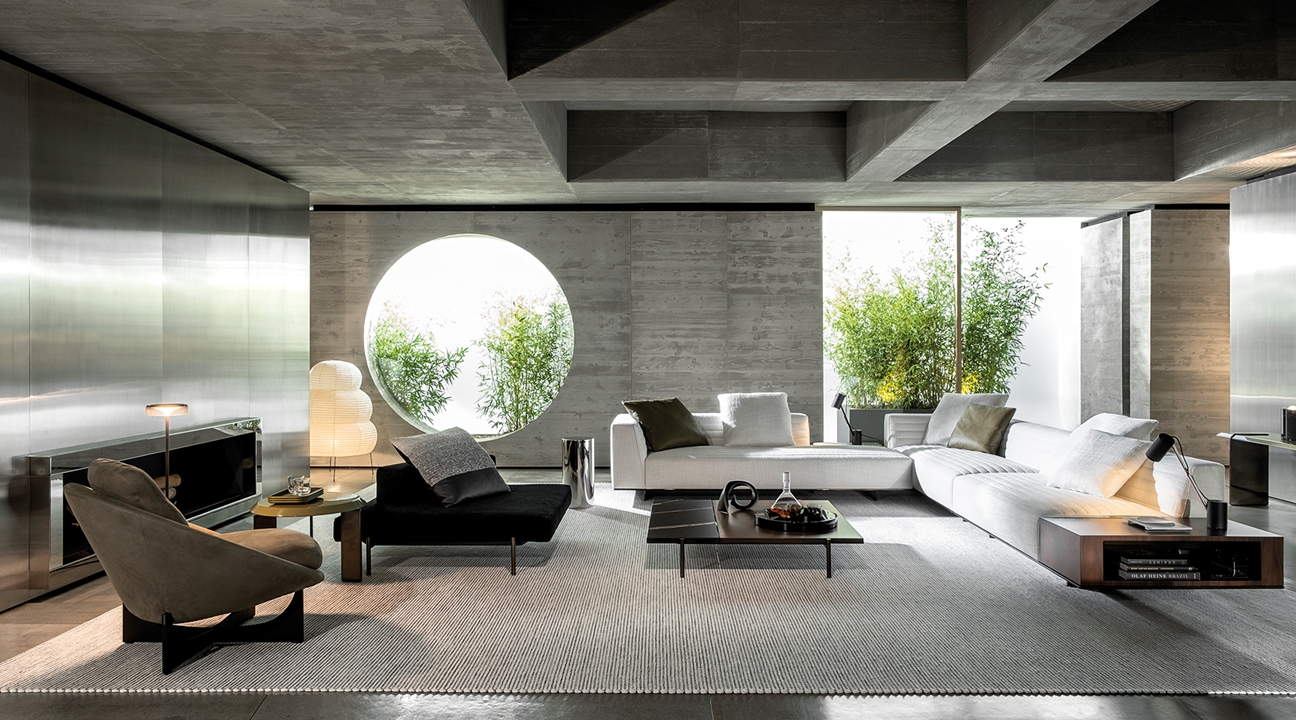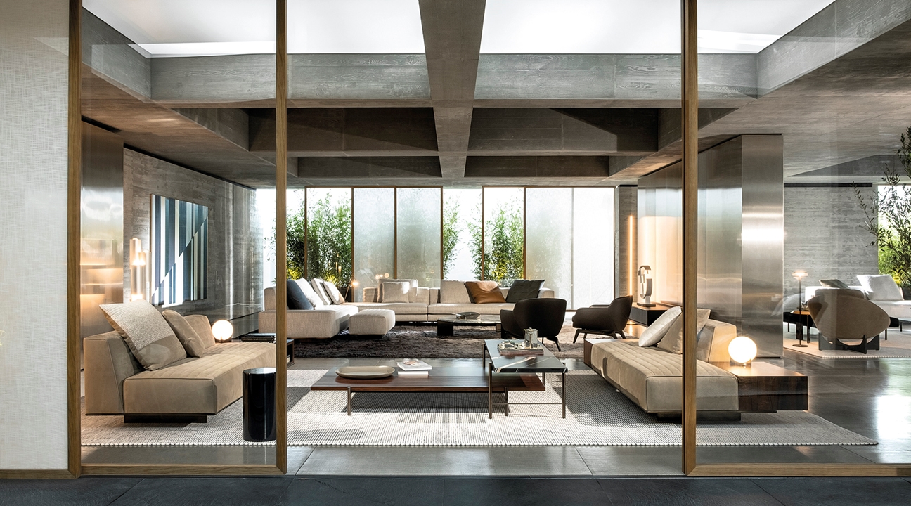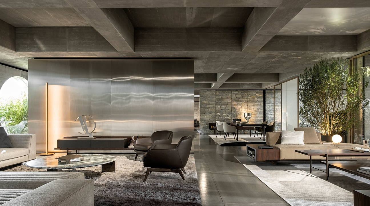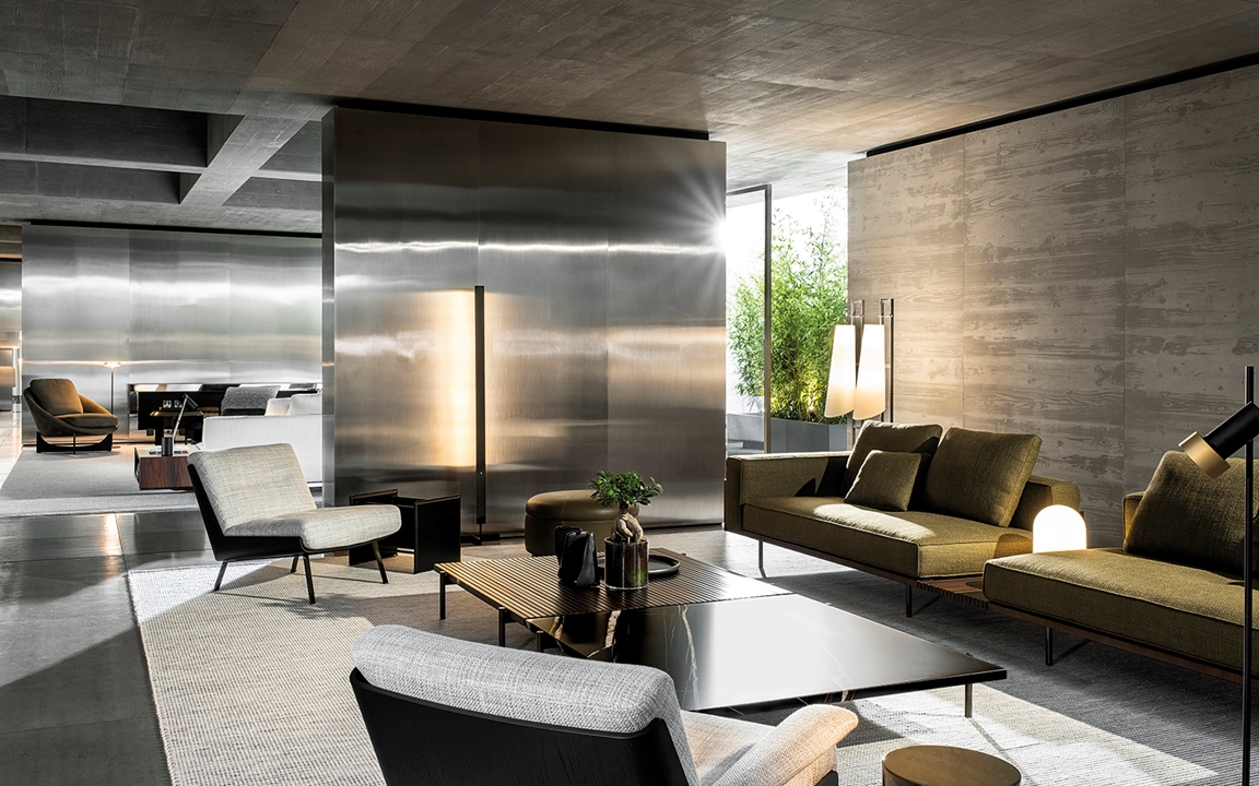 公司展厅和SuperSet2021系列的项目提供了理想的展示舞台,用于呈现精致的产品方案,诠释出Minotti的卓越手工艺、简约美感和优雅格调。