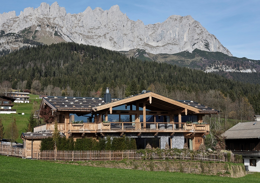 置身于奥地利的怀尔德·凯泽(Wilder Kaiser)山峰之间,面朝著名的基茨比黑勒山(Kitzbühel Horn),这里有一座名为ALM360的优雅小木屋,透过起居空间的高大落地窗,壮阔的美景呈现在眼前。