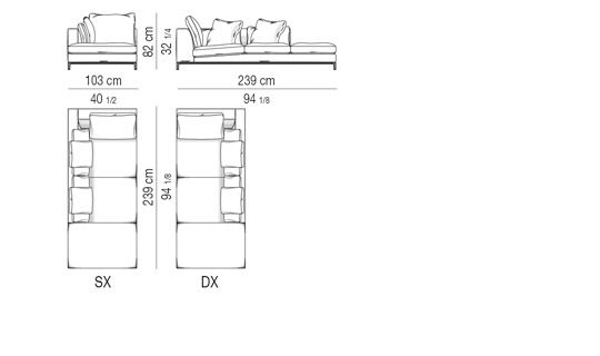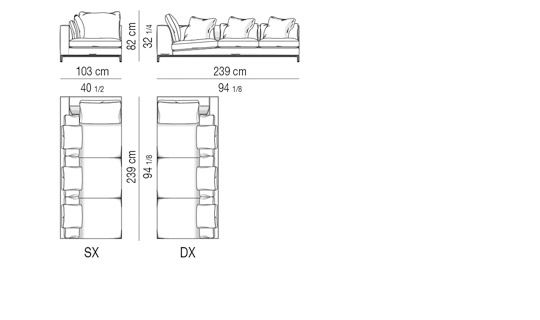 OPEN END CORNER SOFA CM 103X239