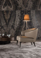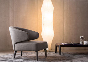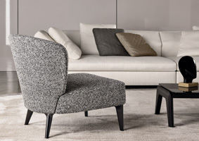 Sofa, armchair and daybed in metal with high natural rubber content elastic strap webbing. Backrest is encased in fire-resistant polyurethane foam and additional heat-sensitive variable density Memory Foam insert. Seat in va- riable-density polyurethane foam coupled with a lightweight channeled down quilting to lend inviting softness and fluffi- ness to the experience.