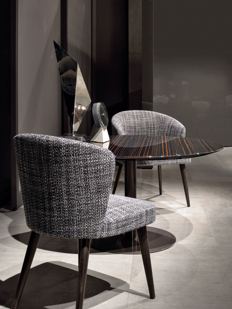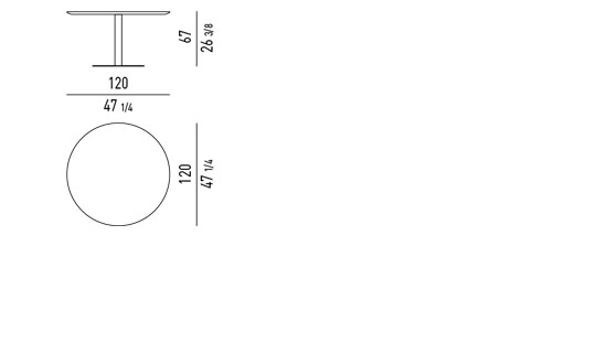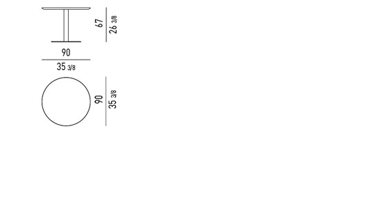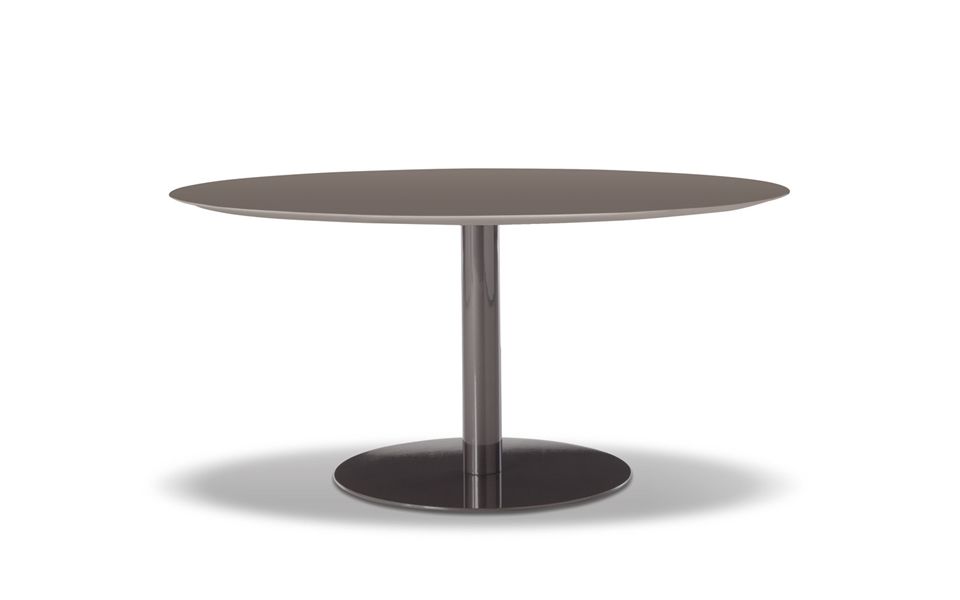 Metal tube, Ø 80 mm, (except for version Ø 120 cm with marble top which has a metal tube of Ø 100 mm), varnisged in glossy Pewter color with extra-glossy anti-fingerprint finish. Protective felt glides.