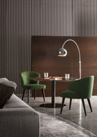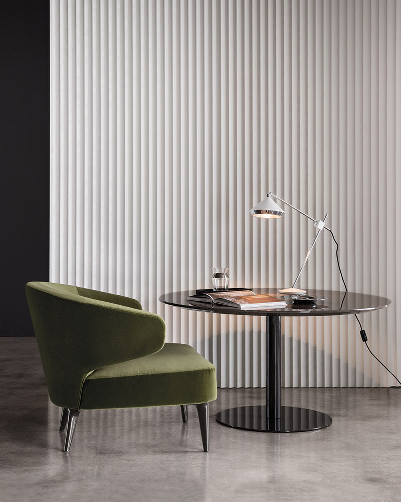 Bellagio “Lounge”桌的构架为金属材质,表面为Pewter色漆面,台面可以选择Calacatta大理石,乌木的木饰贴面,Sand色和灰褐色的亮光漆。得益于简洁的线性设计和多种多样的表面外观,Bellagio “Lounge”用途广泛,可以搭配系列中的各种沙发座椅。