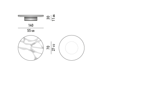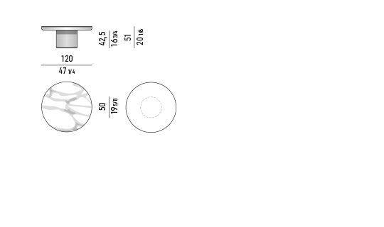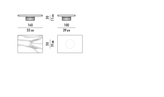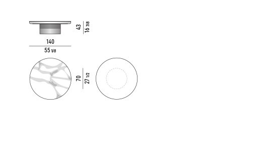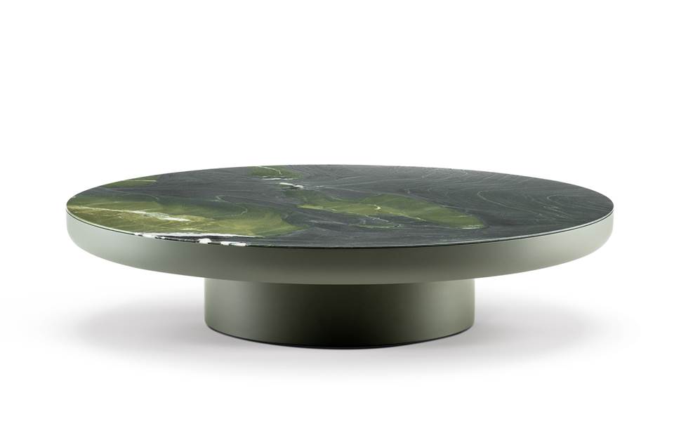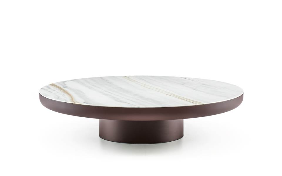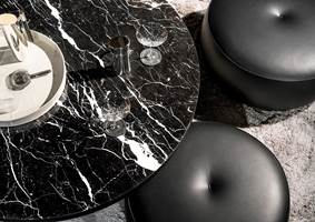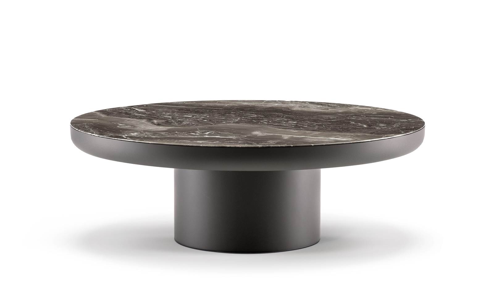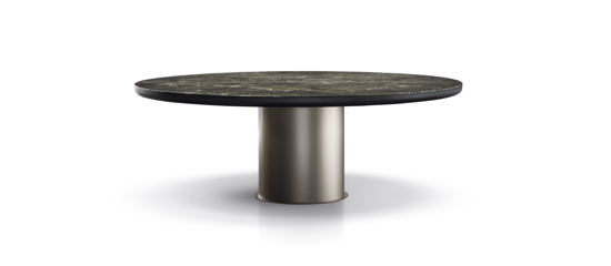 无论是圆形台面,还是圆角设计的长方形台面,两者的中央支撑件均选用圆柱结构,诠释出严谨的造型感,搭配不同色调的大理石台面,谱写出一曲色彩交响乐。透镜造型的台面支撑板采用防刮亚光漆面,淡化石材台面的厚重感,从而彰显作品的轻盈美学造型。