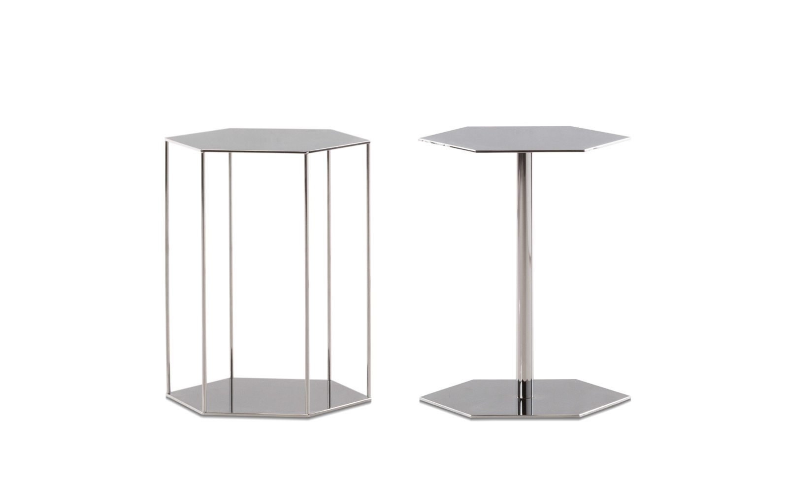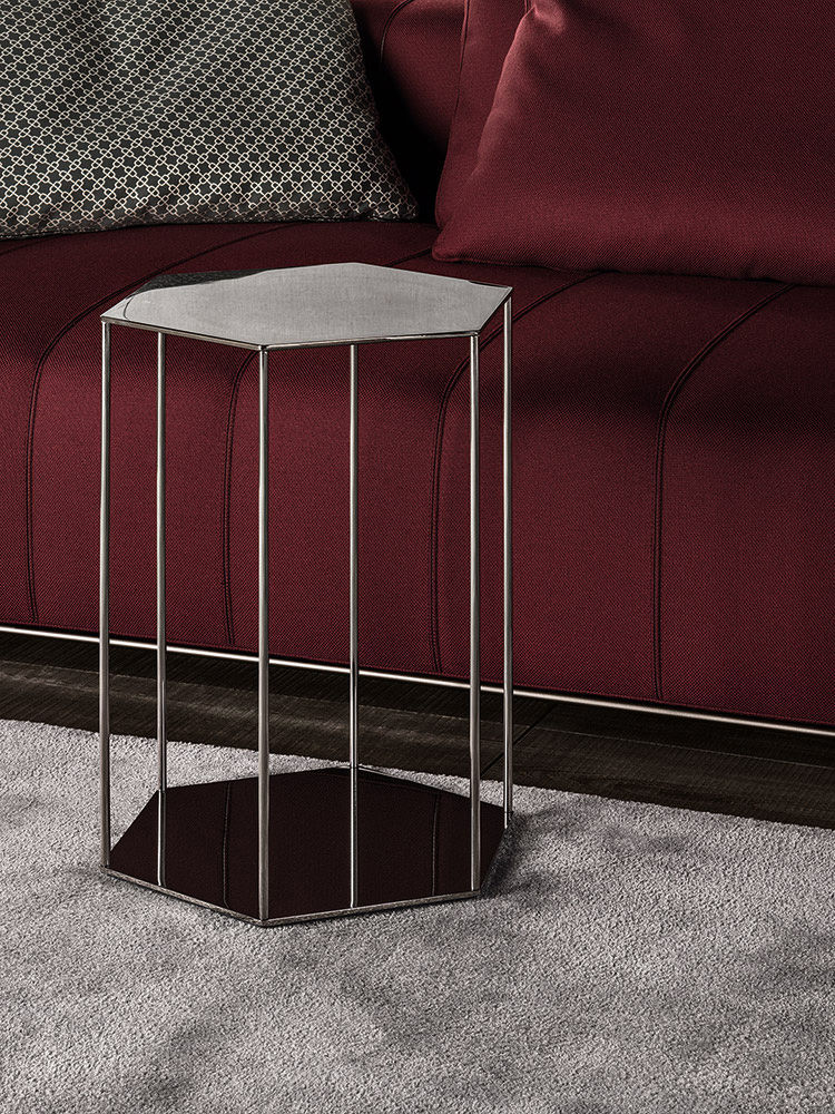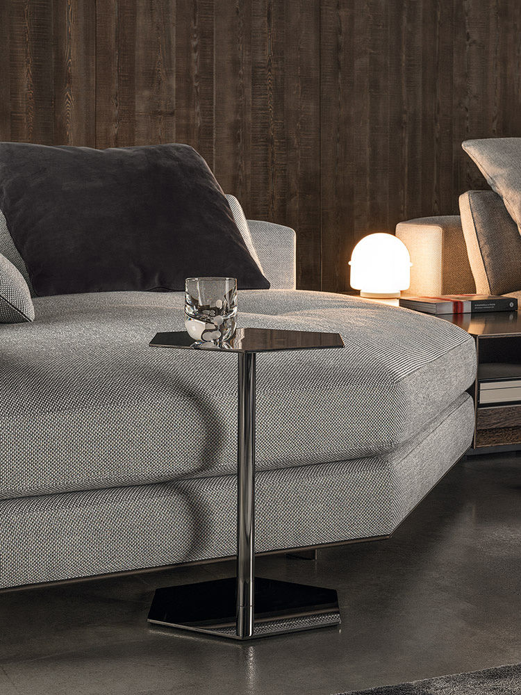 这一系列专为打造居住空间的实用元素而设计,Brisley边几具有独特的个性。基座和桌面是完全对称的六边形,这也是2016系列的主旋律之一,镀铬金属材质则突出其利落的个性。Brisley推出两个版本:一款是基座和桌面对应的六个角分别用细杆连接,另一款是由中心位置的镀铬金属杆连接基座和桌面。Brisley是一款多用途的边几,可以随心所欲地搭配Minotti产品系列中的所有沙发和扶手椅。