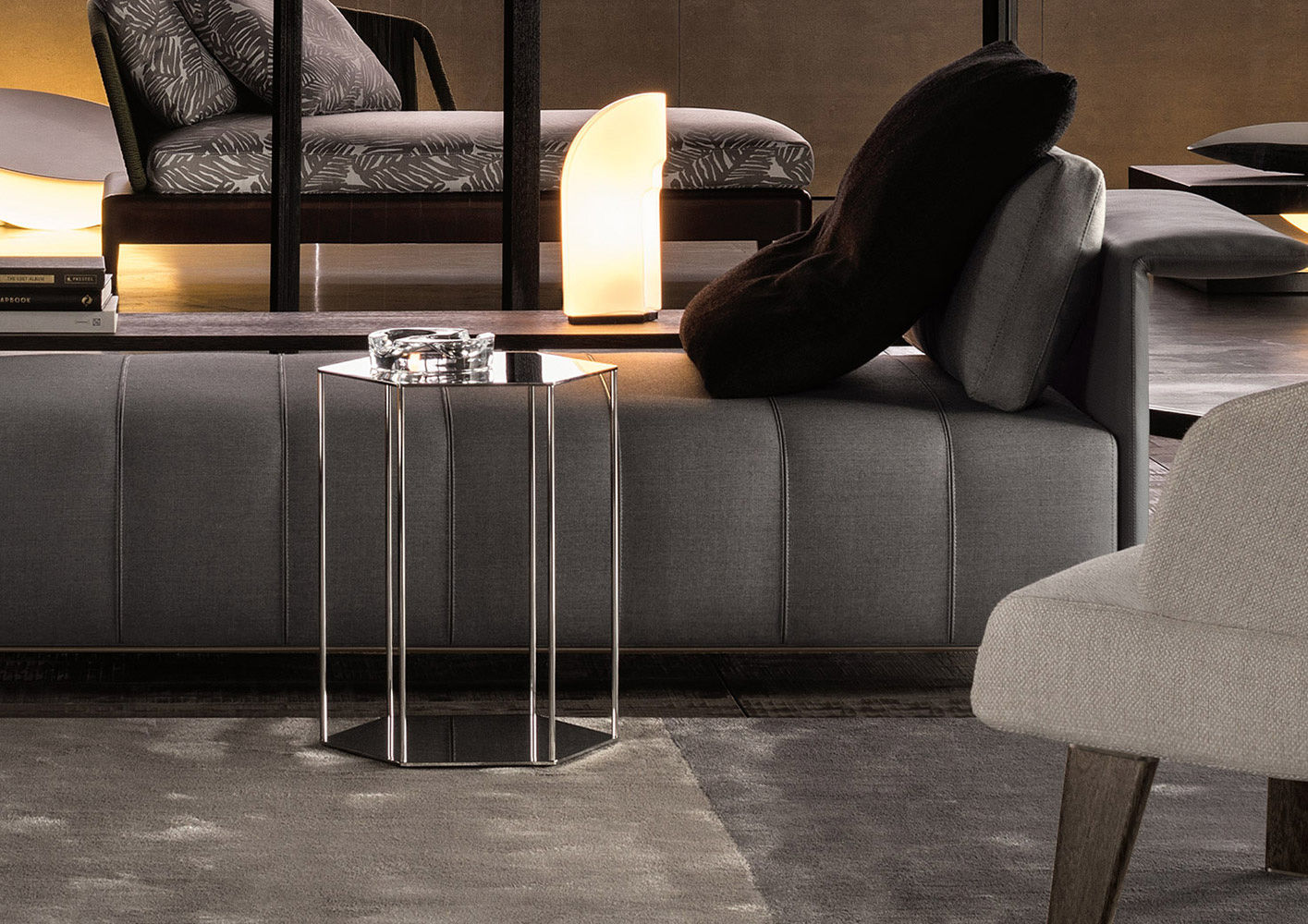 The material available on the Website may not be extracted or reused, reproduced in full or in part, distributed, published or transmitted, without the prior express written consent of MINOTTI. Any other activities that may be prejudicial to the legitimate interests of the authors and holders of rights concerning the original works and decorative models accessible thereon are forbidden.