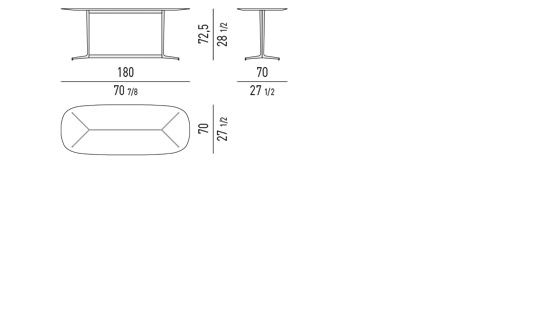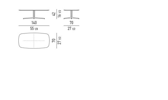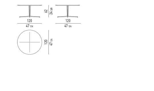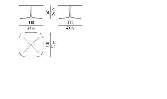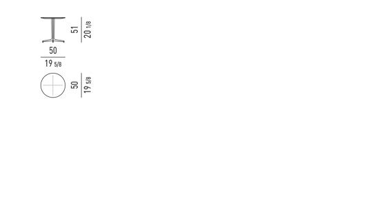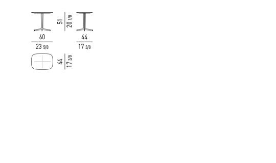 Laser-cut drawn metal base, 10 mm in thickness (except for coffee tables Ø 50 H51 cm and 60x44 H51 cm - 6 mm in thickness). Matt Pewter- colored structure finish.