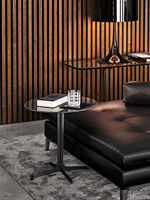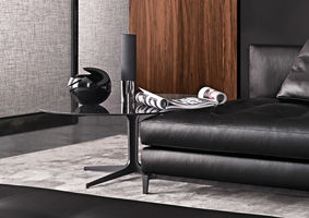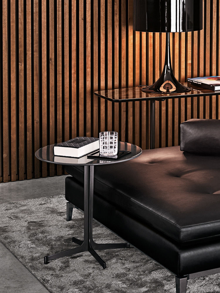 这一系列的边几、边桌、写字台,Lounge桌旨在灵活搭配系列中的其它产品,随性而为,不受拘束。多种尺寸,多种高度,台面有四种的颜色的漆面,材质有烟灰色玻璃或是Moka色橡木,构架为激光切割的Pewter色金属材质。轻触之间便能感受到令人愉悦的触感,简洁而又具有现代感的设计带来视觉上的愉悦享受。