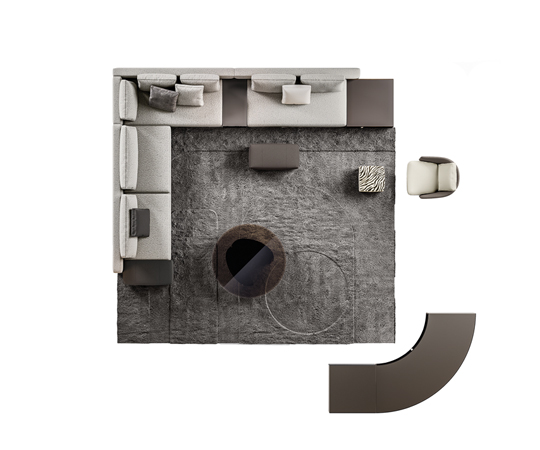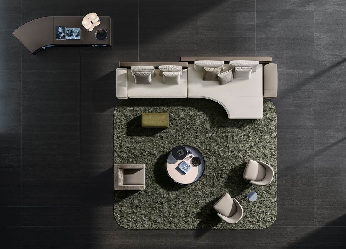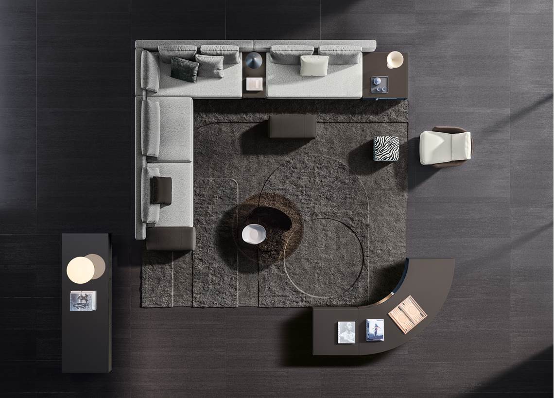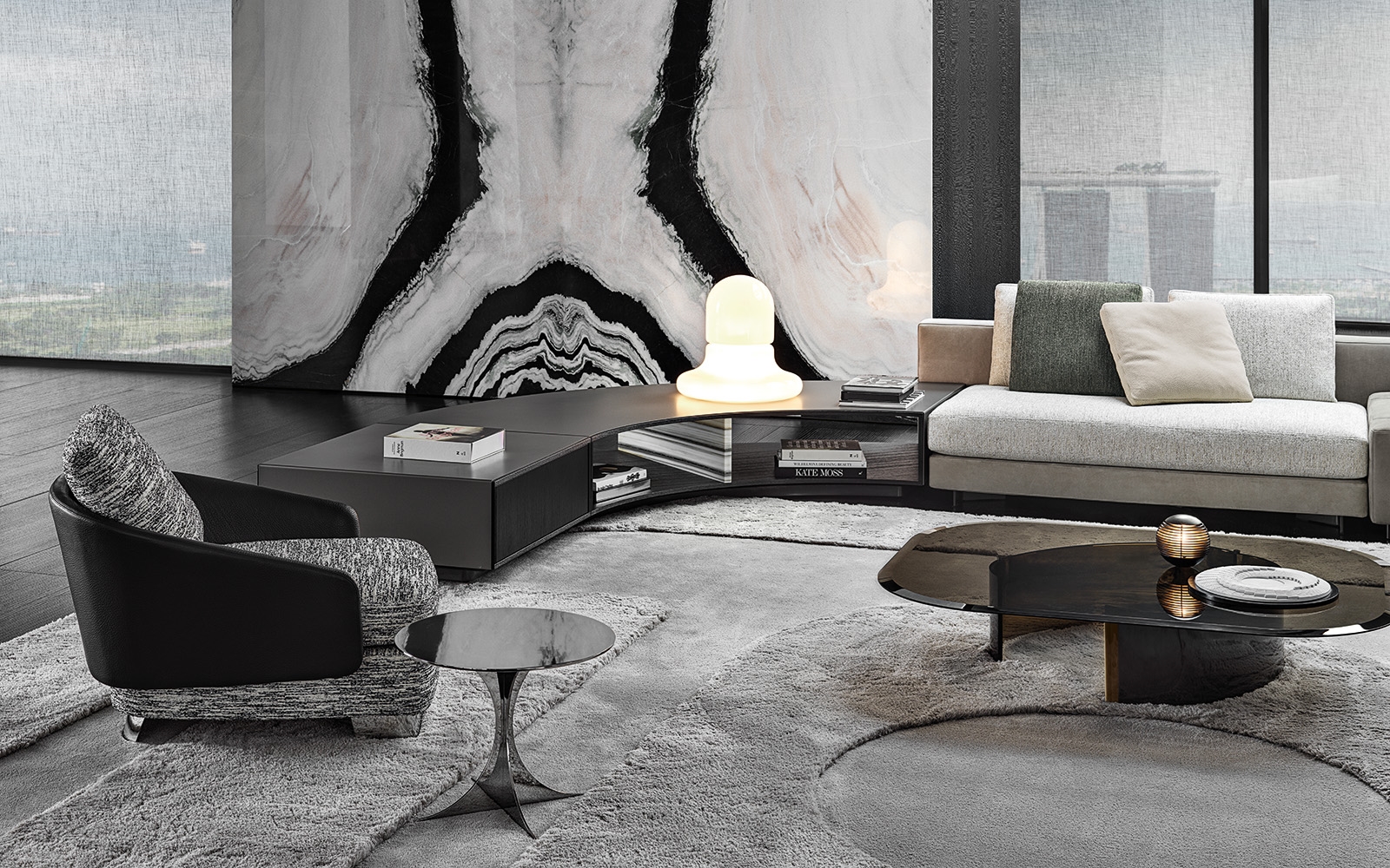 这一系列凭借其特有的原创性和创新性,可以完美搭配Amber低矮家具,创建具有强烈视觉冲击力的设计方案,从沙发的柔软效果到收纳柜的坚硬质感,从方形的几何造型到非凡的曲线组合,无不呈现出流畅的美感过渡。
