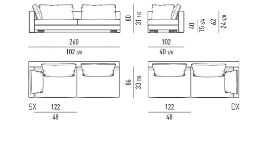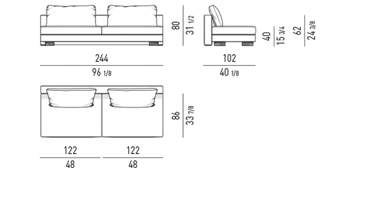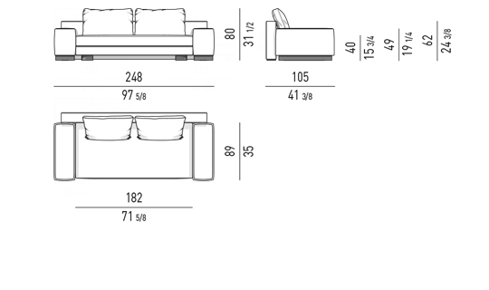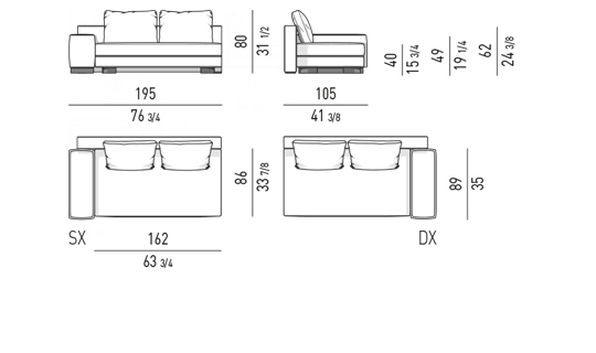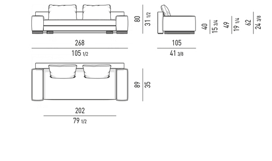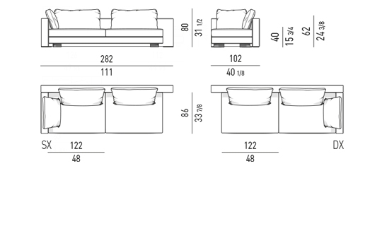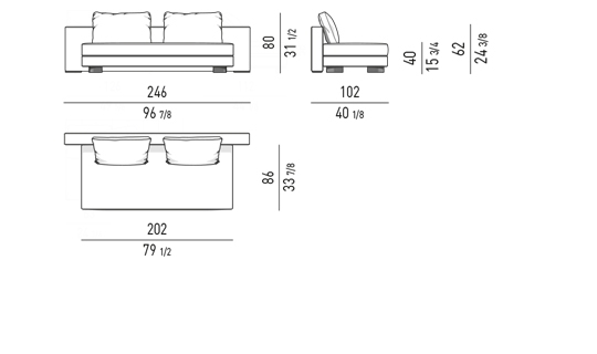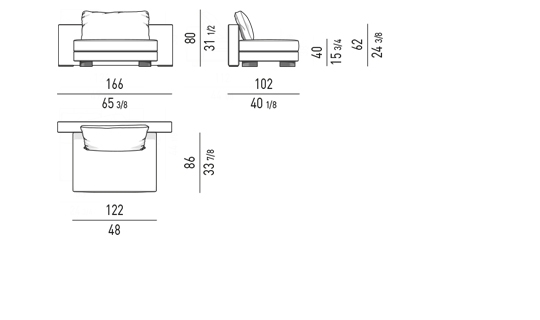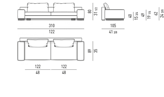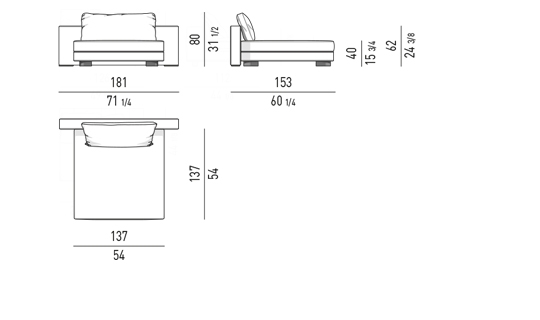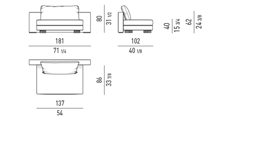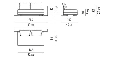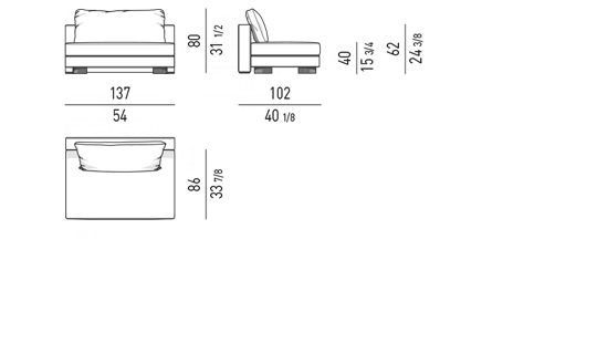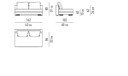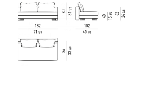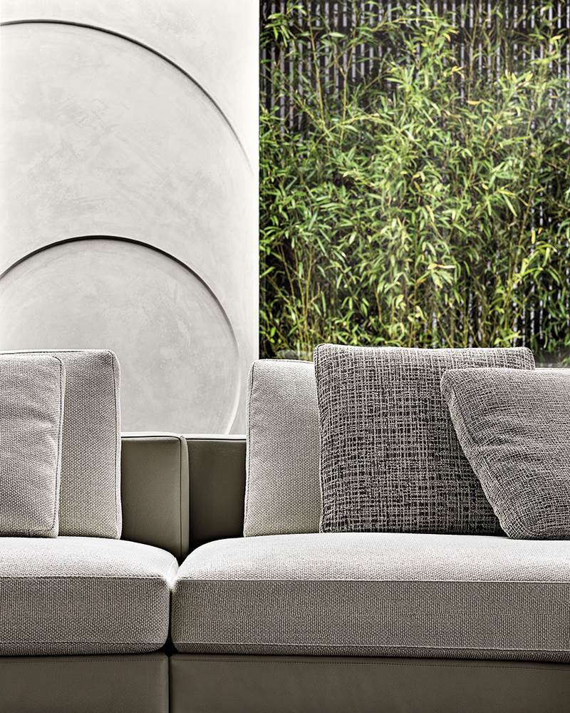 靠背结构搭配两个纵深不同的组合,可以玩味靠背重叠的摆放创意,在背面营造出动感,当沙发置于房间中央时,这一重叠摆放创意不仅可以搭配Clive边柜,还可以突显造型的韵律感,避免让沙发背面呈现出像是一块幕帘的单调效果。