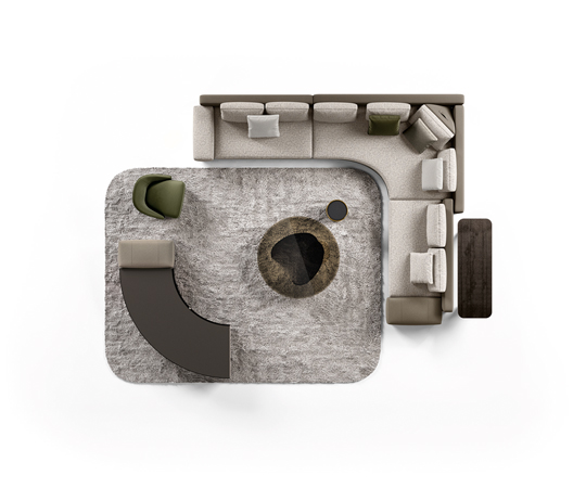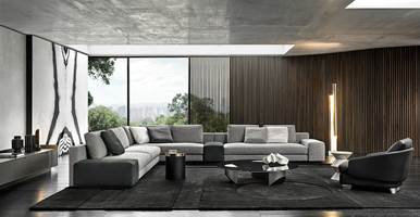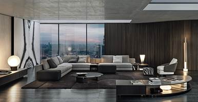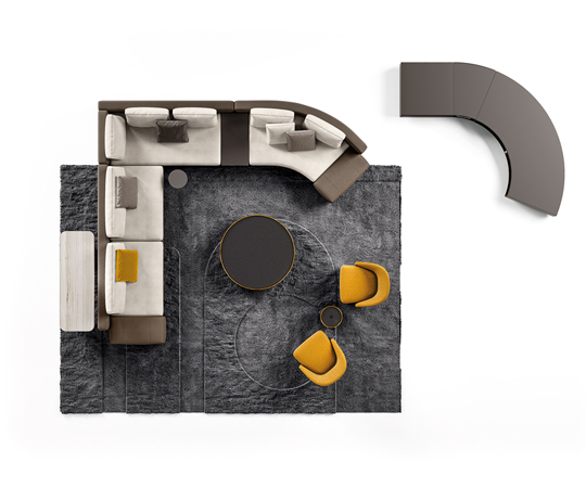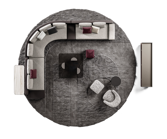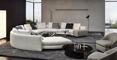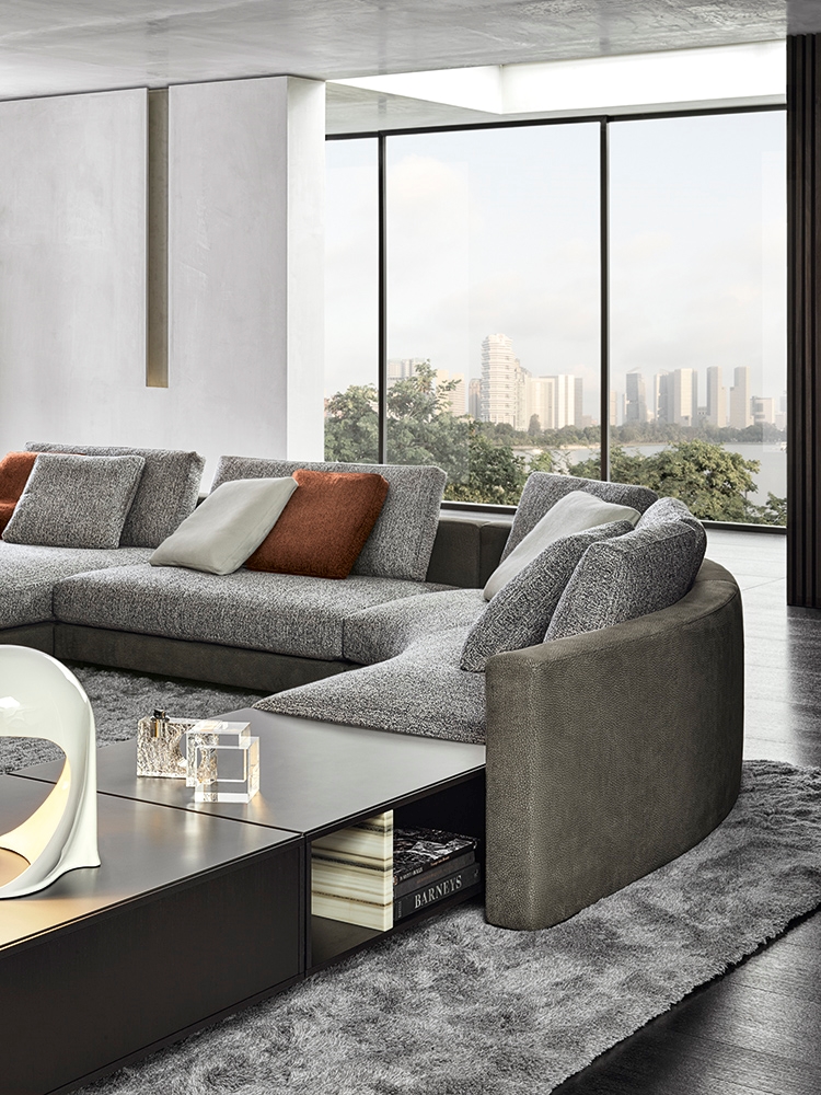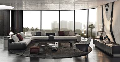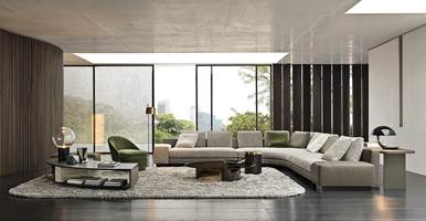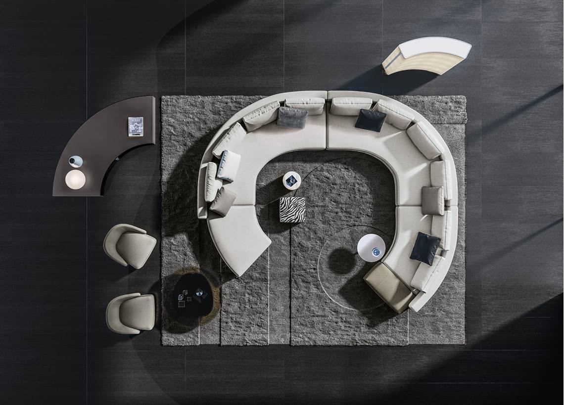 Daniels沙发组合系列类似于景观设计项目,各个元素的巧妙组合打造出让人耳目一新的室内住宅景观,起居区域采用别出心裁的组合形式,将规则的弧线和椭圆形融入线性设计,为其增添一份灵动感。