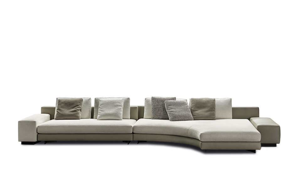 其设计概念的基础是打造超多组合形式和超高舒适度,值得一提的是,该系列的座垫设计别具一格。不胜枚举的组合方案中包括造型宽大的躺椅沙发,带有弧形座垫。