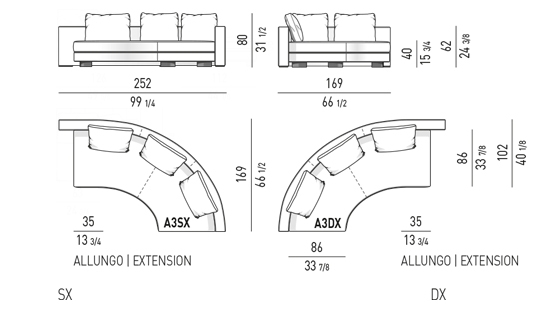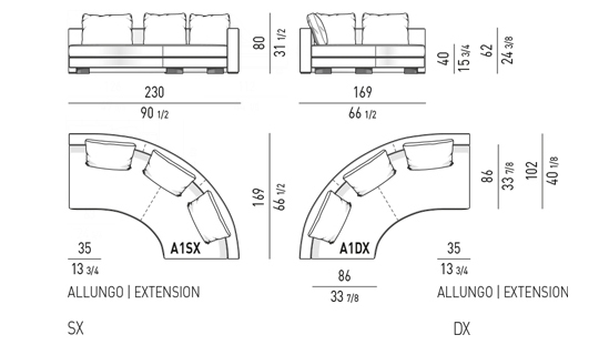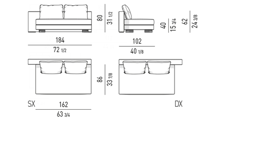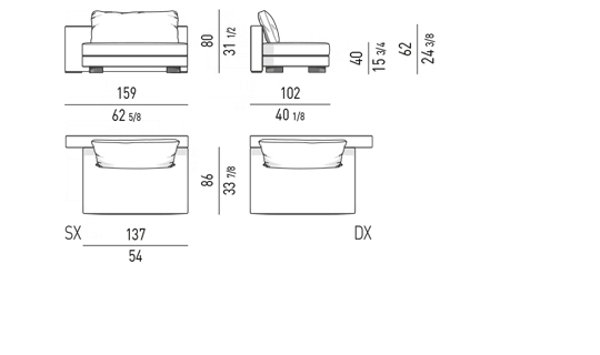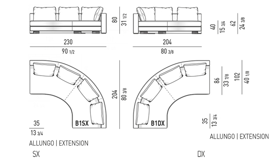 CAD文件中标注的尺寸可能与产品信息表中的尺寸稍有不同。注意:本网站上的CAD文件受到版权保护,归Minotti SpA公司独家所有。公司仅限在室内设计中使用该文件。严禁将其用于其他用途。