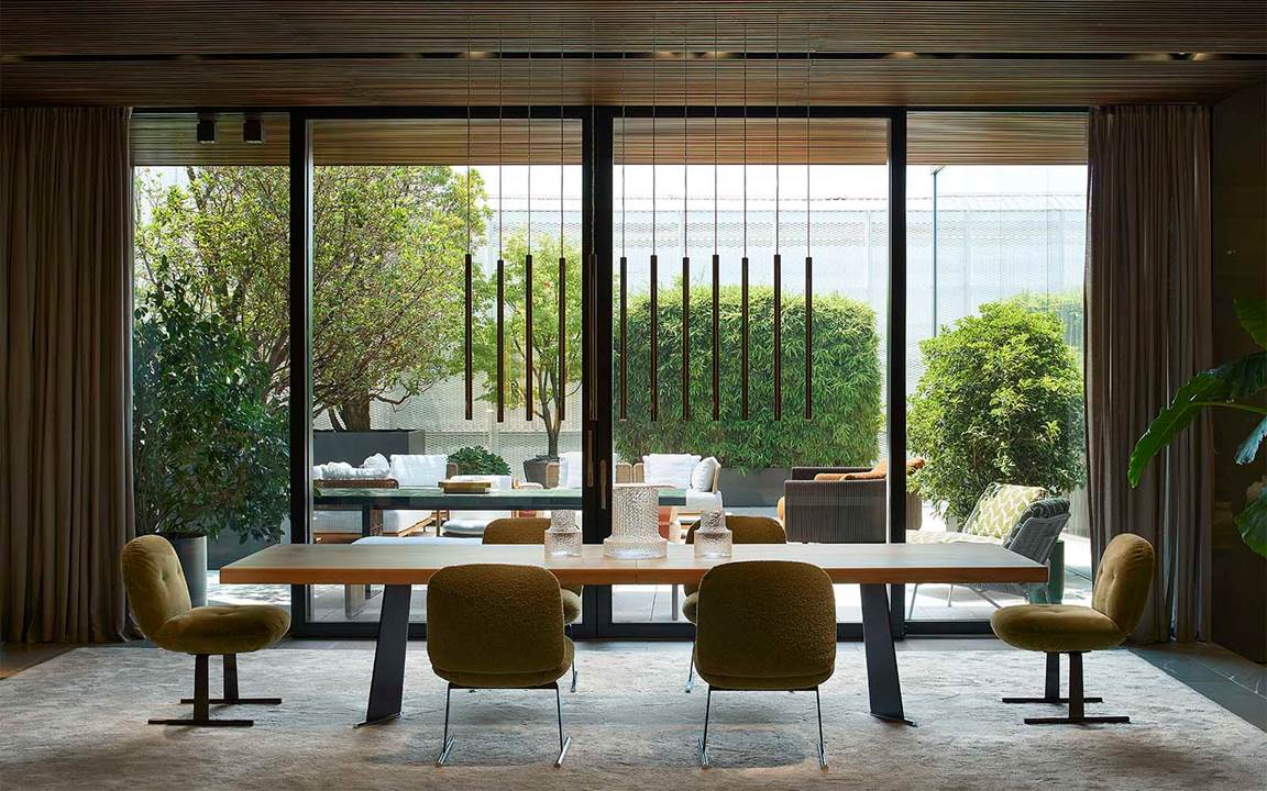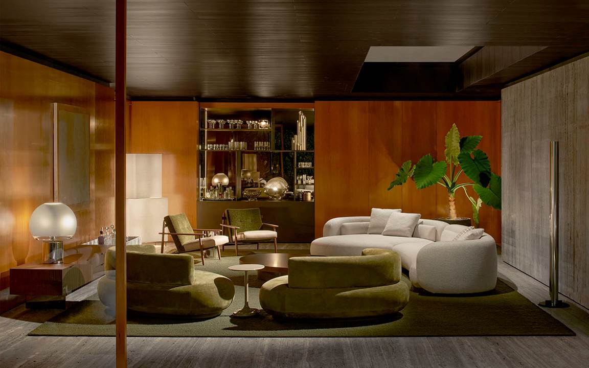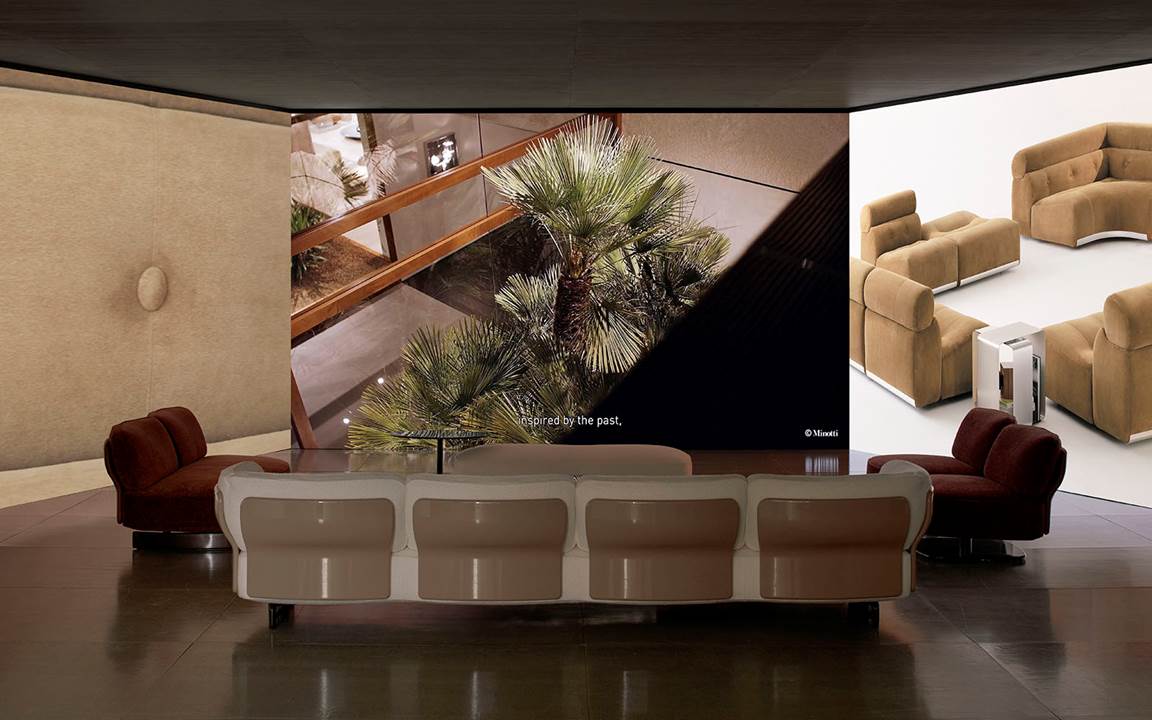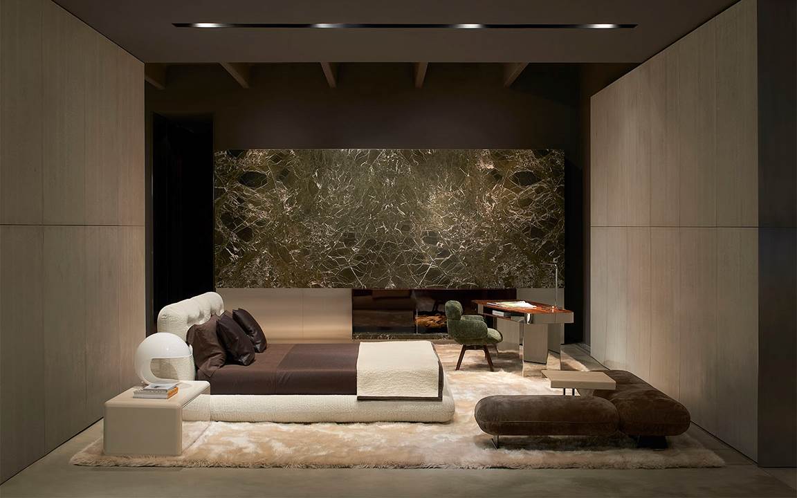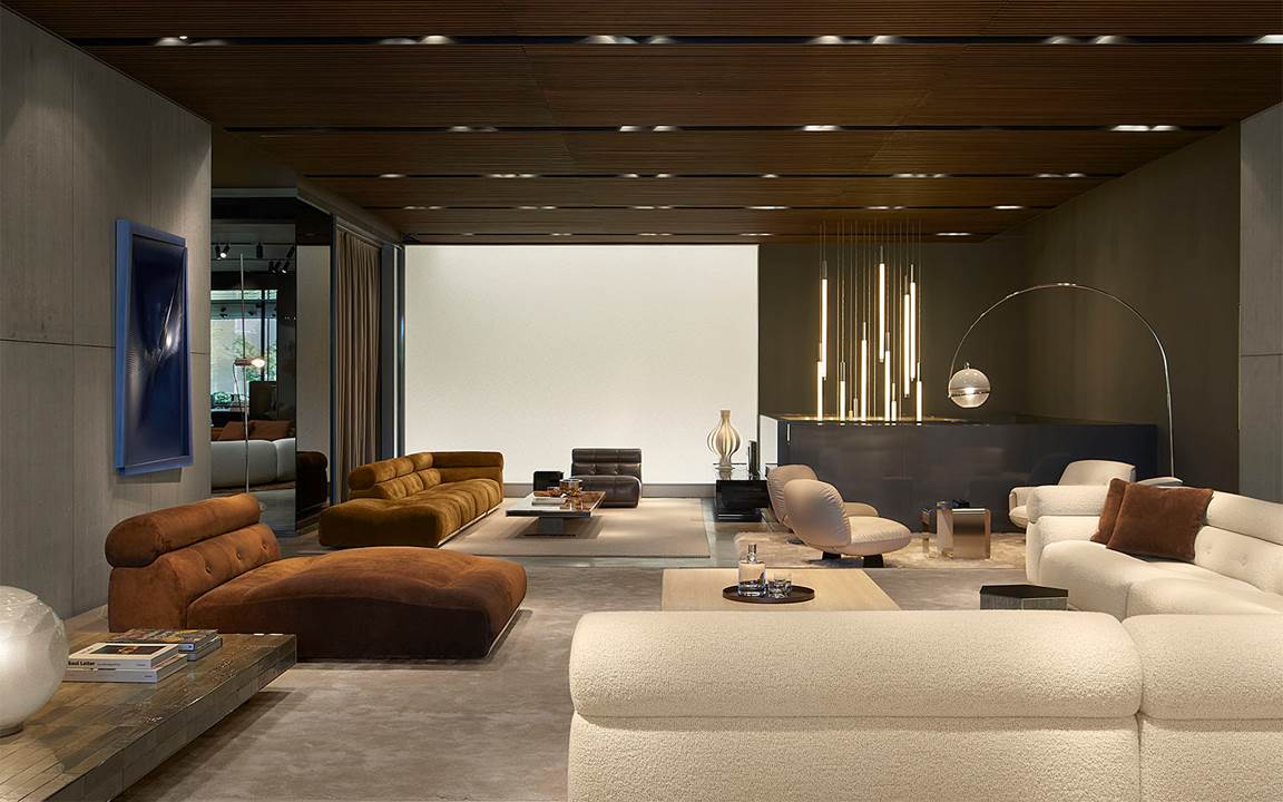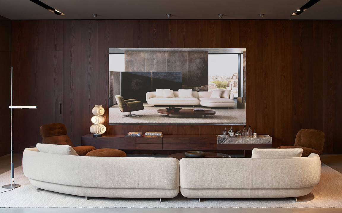 展厅空间由Minotti Studio策划设计,将整个1000平方米的区域打造成协调一致的场景,优雅的客厅、餐厅和卧室空间带来沉浸式的体验,彰显理想住宅和酒店环境的迷人氛围。
