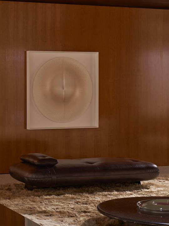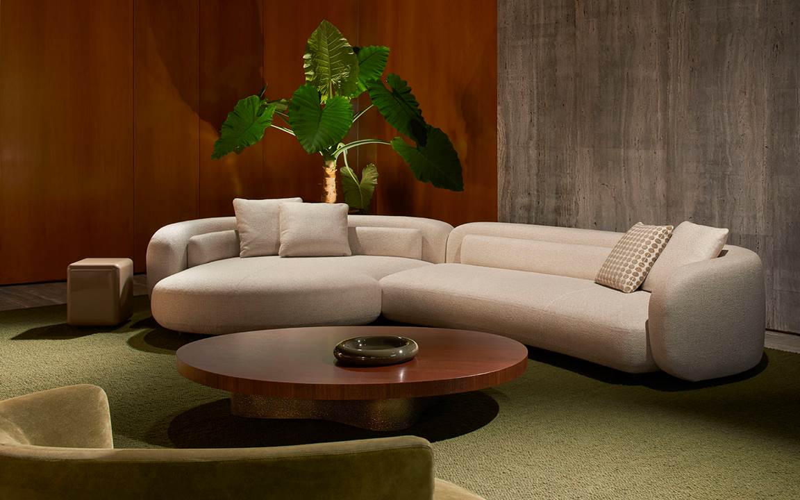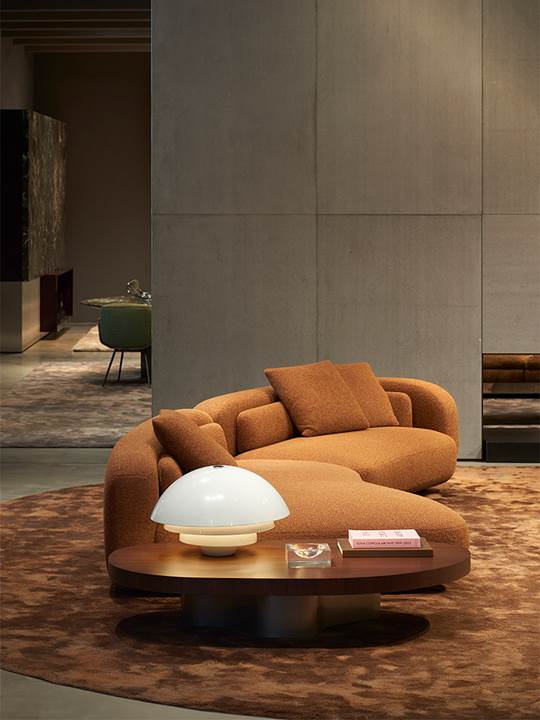 在以 Piasentina石材、灰色混凝土和温暖木饰面为特色的框架中,视角与抬升岛台的独特互动,凸显了2025系列家具各异的设计语言 – 其中包括由Giampiero Tagliaferri设计的模块化座椅系统Coupé、Marcio Kogan / Studio MK27工作室打造的Bézier、GamFratesi设计的Vivienne、Nendo工作室创作的Saki,以及Hannes Peer操刀的Riley——同时呈现品牌的经典畅销款式