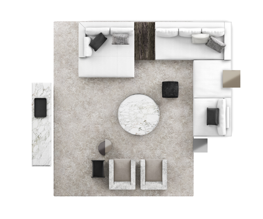 这一系列注重当代家居在美学和功能上的革新,赋予客厅空间多种多样的功能,诸如休闲、工作、会客、谈天。