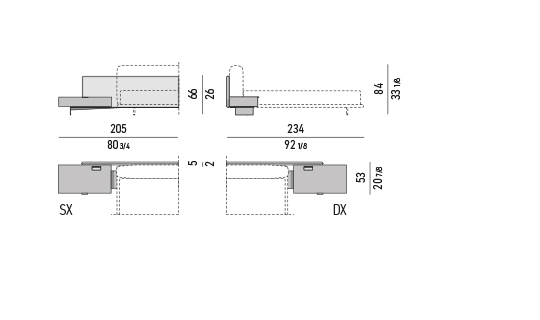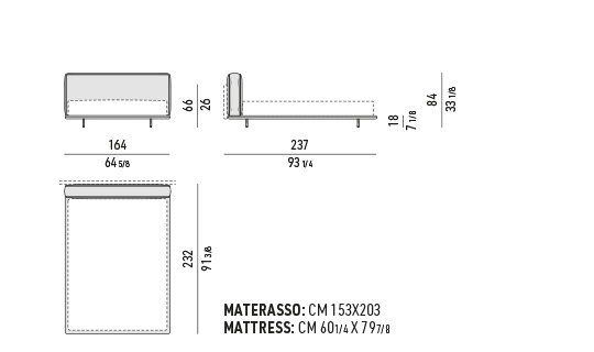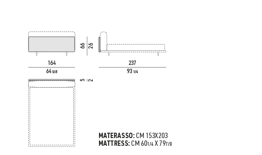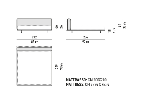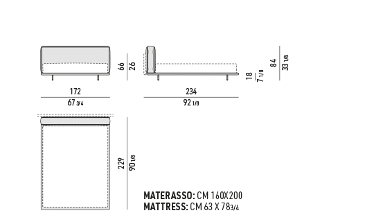 Covers: upholstery in fabric or leather is completely removable. Removal of the headboard upholstery is possible by lifting the headboard out of the bed frame by means of levers located underneath the bed.