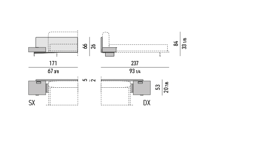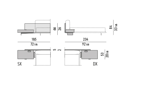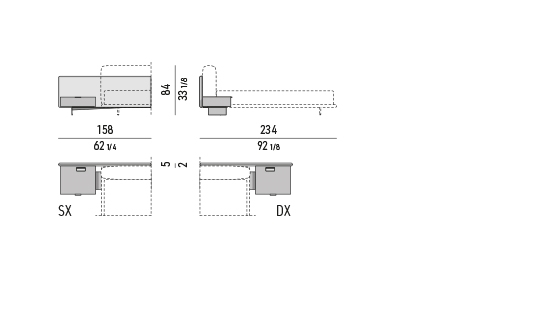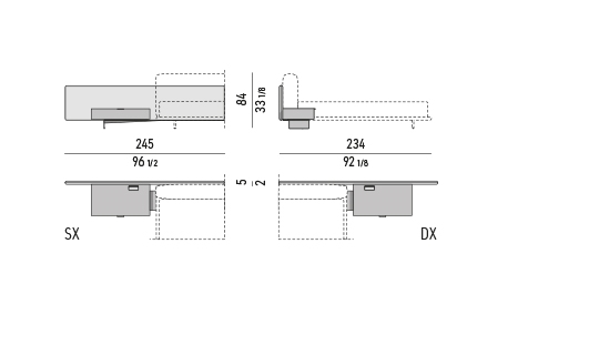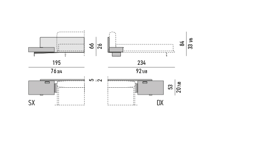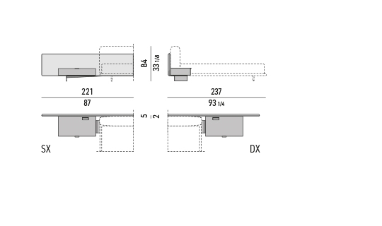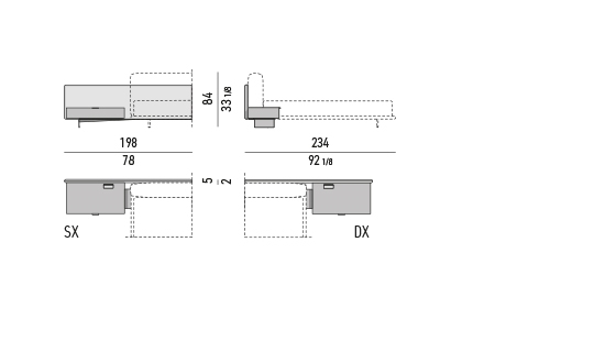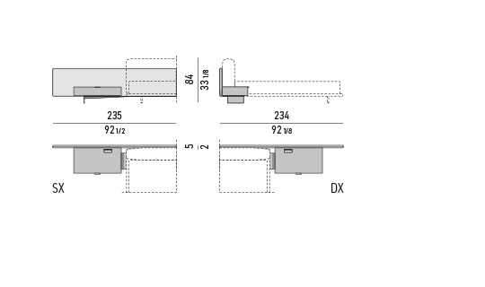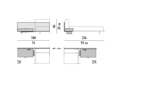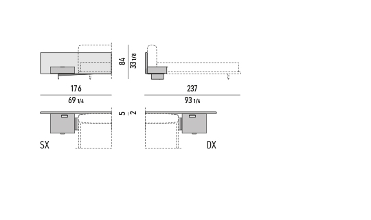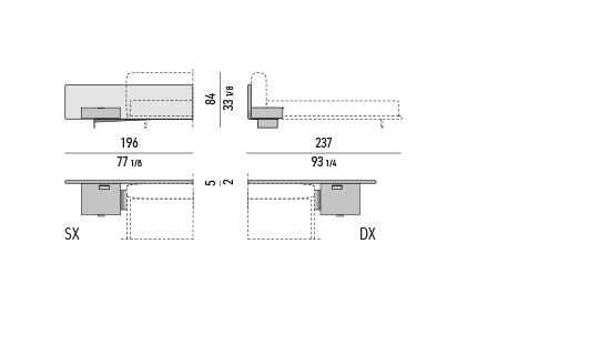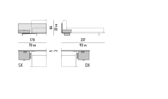 Composed of a single panel attached to the back and fit with the upholstered headboard. One-piece panel in metal-reinforced plywood covered with quilted heat-bonded polyester fibre. All of the materials employed in manufacturing the quilting are hypoallergenic and made with recycled materials. The panel and the headboard are attached to each other and to the bed frame. 2 optional nightstands are available, left and right (SX and DX) attached to the sommier. The special upholstery for the base and the rear headboard panels in the OFFSET/FIT versions can be made entirely in fabric, featuring a central piping between the two sections. Entirely in leather which are joined with a strip of double-stitched leather; or, with one side in leather and one in fabric, joined by a hidden zipper that allows the upholstery to be removed (MIX version).