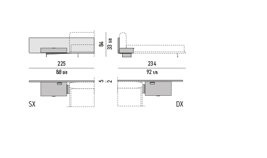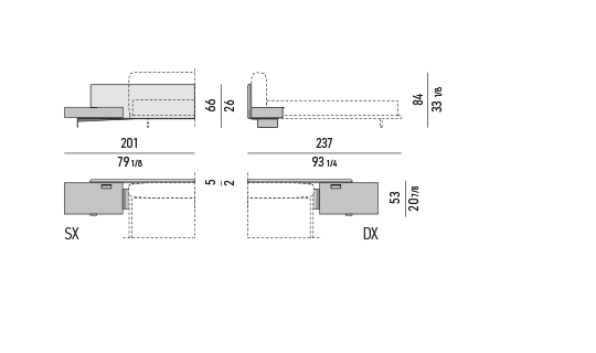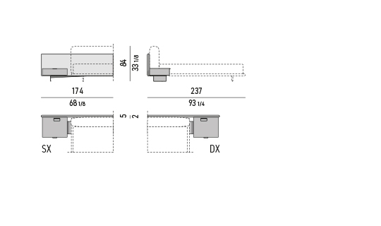 B) MIX upholstery (upholstery of the front part in fabric and the posterior part in leather cat. Nature Leather). Should the upholstery choice for the sommier/headboard be in MIX version (C), the upholstery of the panel(s) OFFSET/FIT in the MIX version must be the same as the fabric choice.