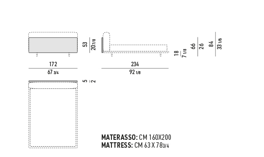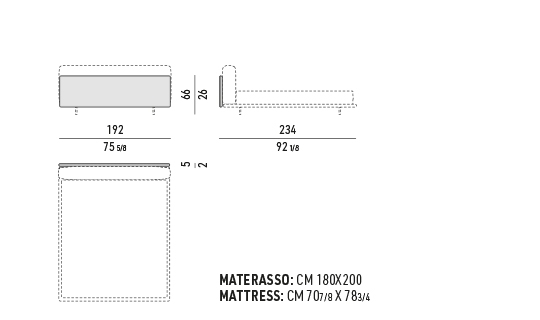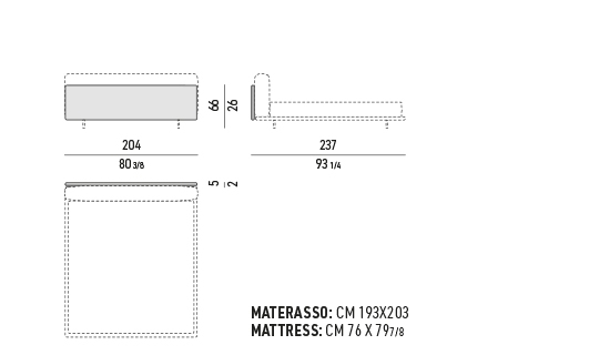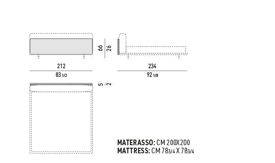 N.B.: given the structure of the bed, it is not possible to insert a slatted base or adjust mattress height. The bed headboard and accessories do not require attachment to a wall.