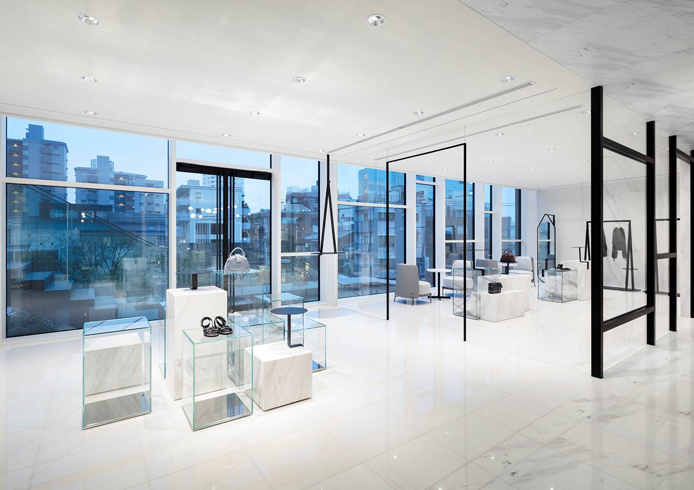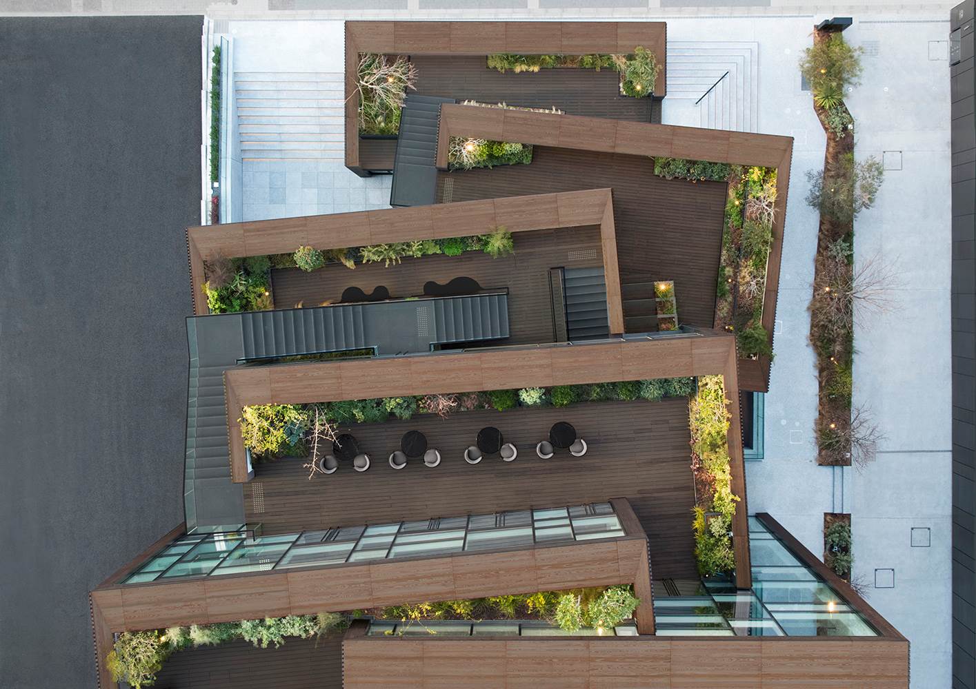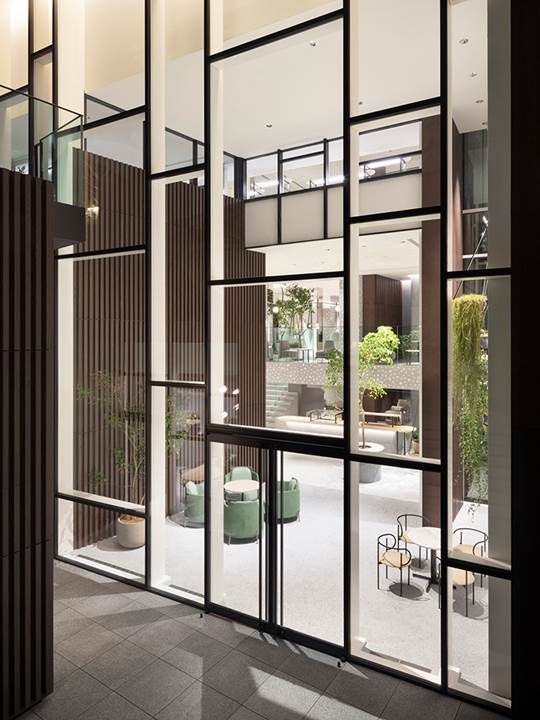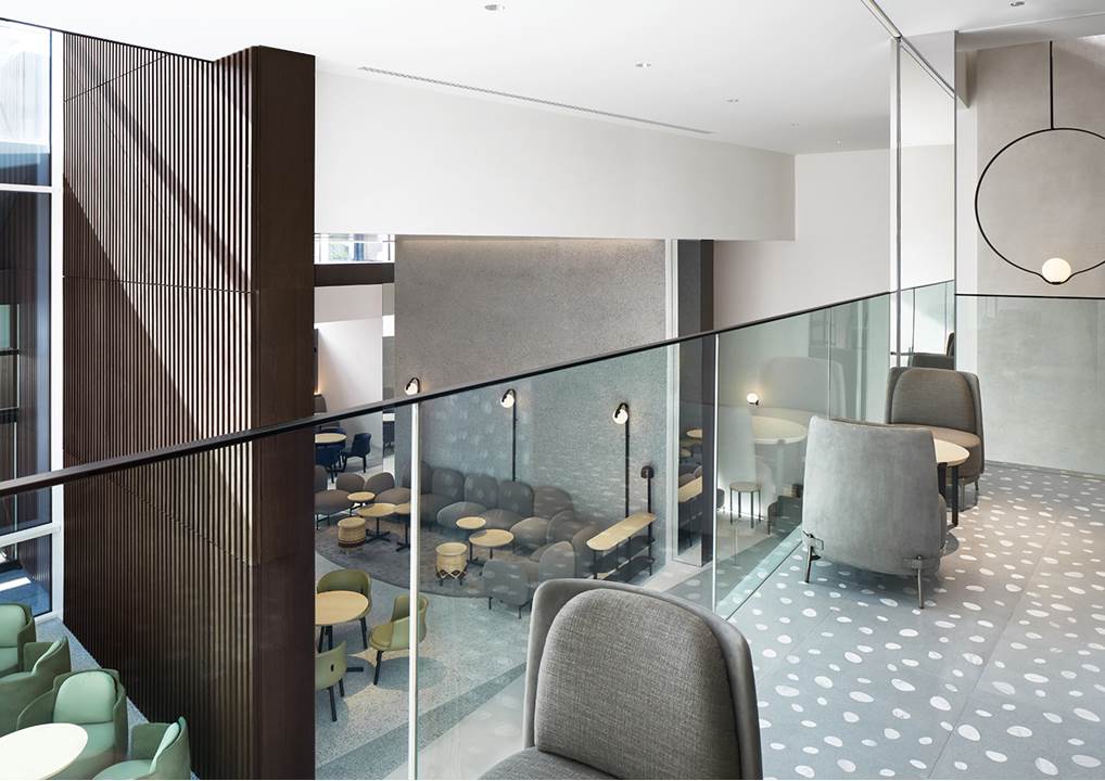 这座建筑外观精致,大型全景落地窗使其独具魅力,四层格局交错重叠,通过和谐的方式彼此穿插在一起。一家咖啡馆将地下层与一层相连,并设有画廊和休闲区,这里是举办活动和展览的理想场所;二层和三层的主题是时尚和设计;四层和五层则分别设有餐厅和小酒吧。