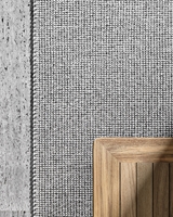 The rug is made of 100% polypropylene fiber. The rug is 6 mm high. Overall weight is 2,8 kg/m². The rug can also be made in custom sizes (multiples of 50 cm) up to a maximum size of cm 600x400 and Ø 450 cm and Ø 450 cm. Its composition ensures permeability and breathability, which make this rug the right choice for use even in humid environments. The rug is available in the Ash colour.