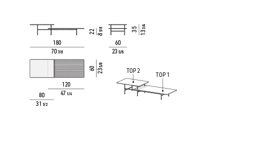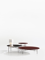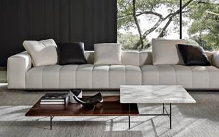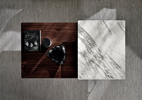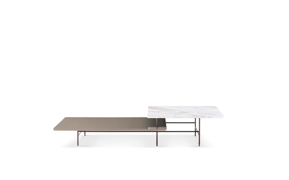 Lelong产品家族十分丰富,提供多种多样的尺寸和饰面,台面有方形、圆形和长方形可供选择,因而用途广泛,可以摆放在沙发前,也可以与边桌、边柜搭配使用。边几还推出一个两层交错的版本,由于层面高度不同,创造出一款具有雕塑感的多用途家具。
