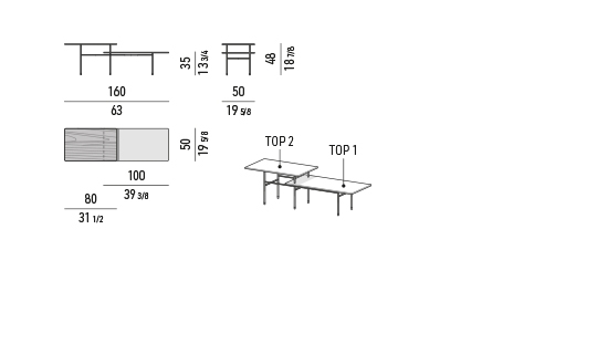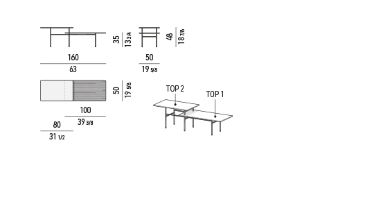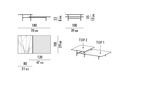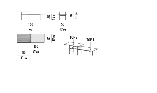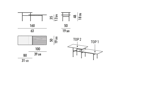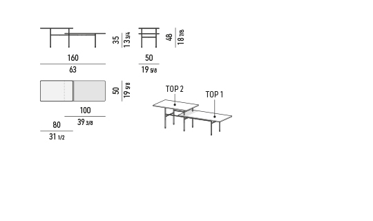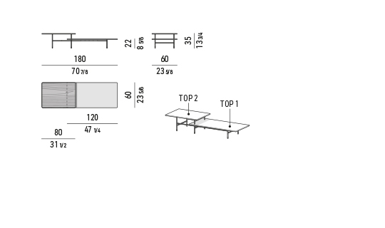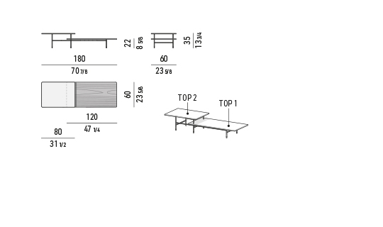 就单层台面版本而言,台面饰面有卡布奇诺色、摩卡色、棕栗色、军绿色、孔雀绿等亮光漆可供选择,可以选用深棕色卡纳莱托核桃木或灰褐色开孔白蜡木;在双层台面版本中,下层台面的饰面选项与单层台面版本相同,而上层台面有四个选项,分别是:灰褐色白蜡木,深棕色卡纳莱托核桃木,亚光抛光Calacatta大理石或各种亮光漆面。