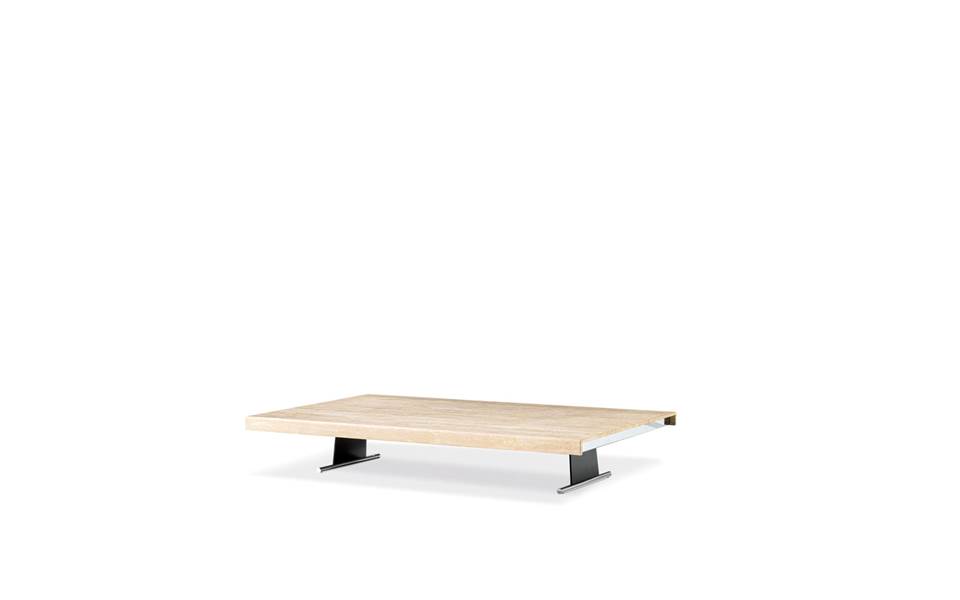 边几有大理石、石材和木制台面可供选择,侧面呈倒置的“C”形轮廓,短边两侧饰有后置的镀铬金属条,细节之中尽显精致格调。桌腿由亮光镀铬金属管构成,上方固定金属板,以此承托起桌面,打造出轻盈的视觉效果。