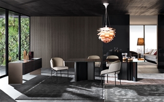 这个餐桌系列的设计灵感来自树干天然流畅的造型,源于大自然的鬼斧神工,充满动人心魄的魅力。