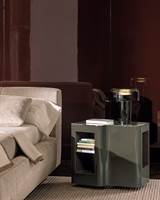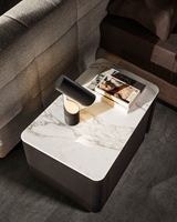 同名的Lou边几采用旋转式基座,材质为落叶松木,漆面有灰褐色、焦糖色、摩卡色、苔藓色可供选择,开放式格柜则采用缎面铜色金属饰面。台面可以选用Calacatta大理石、Rosso Levanto大理石、Verde Lepanto大理石、黑色玻璃釉。这款边几可以放置在卧室,从而取代传统的床头柜,也可以放置在客厅,搭配Minotti系列的所有沙发座椅,皆相得益彰。