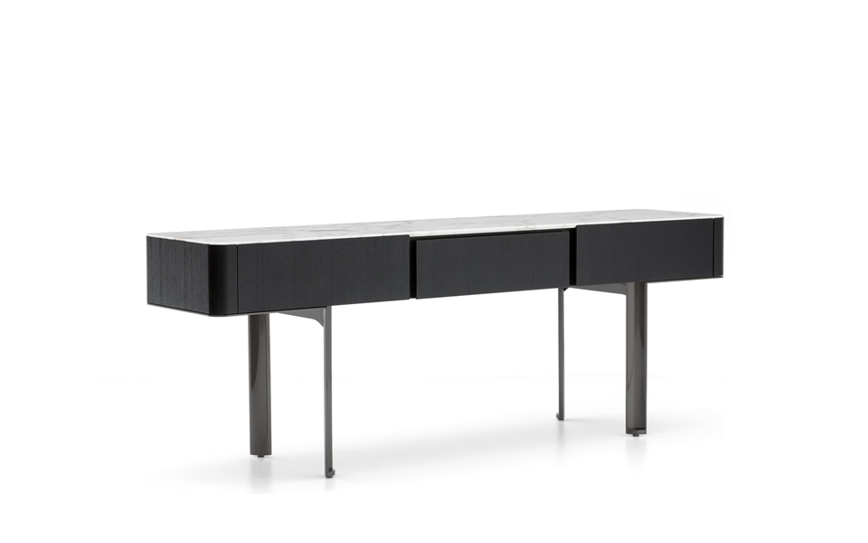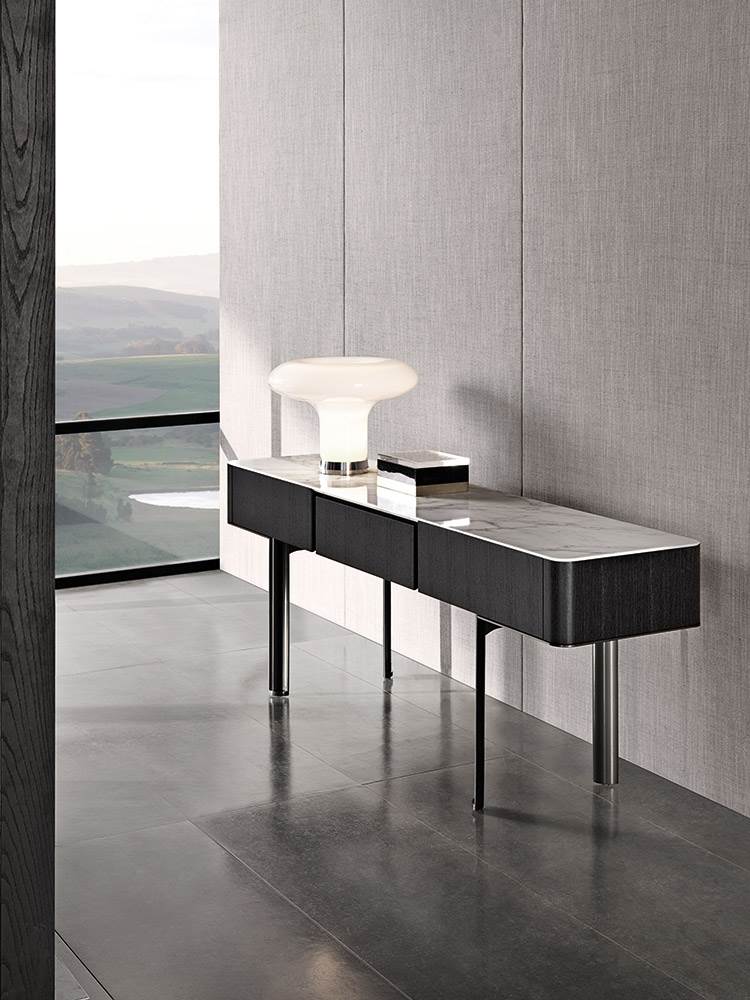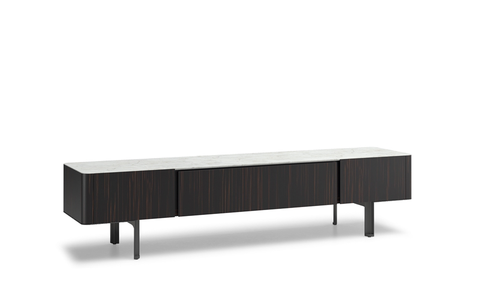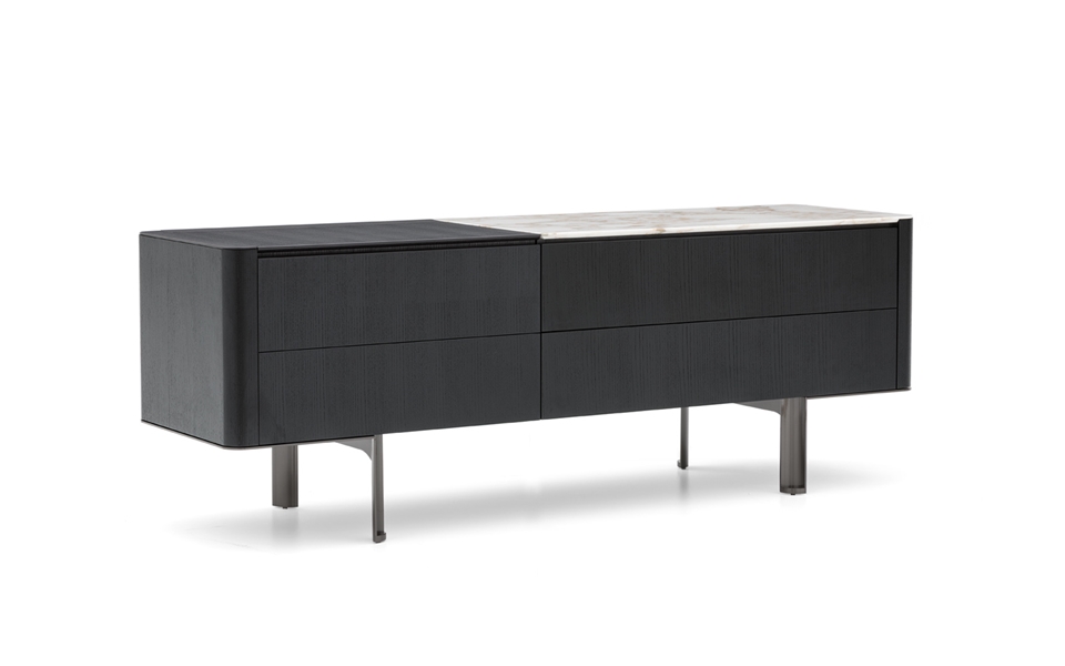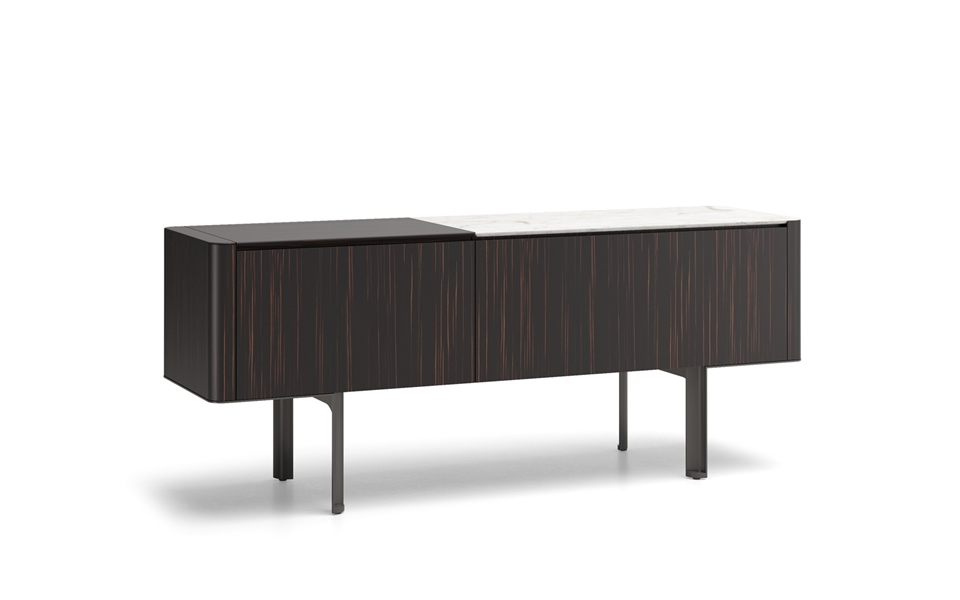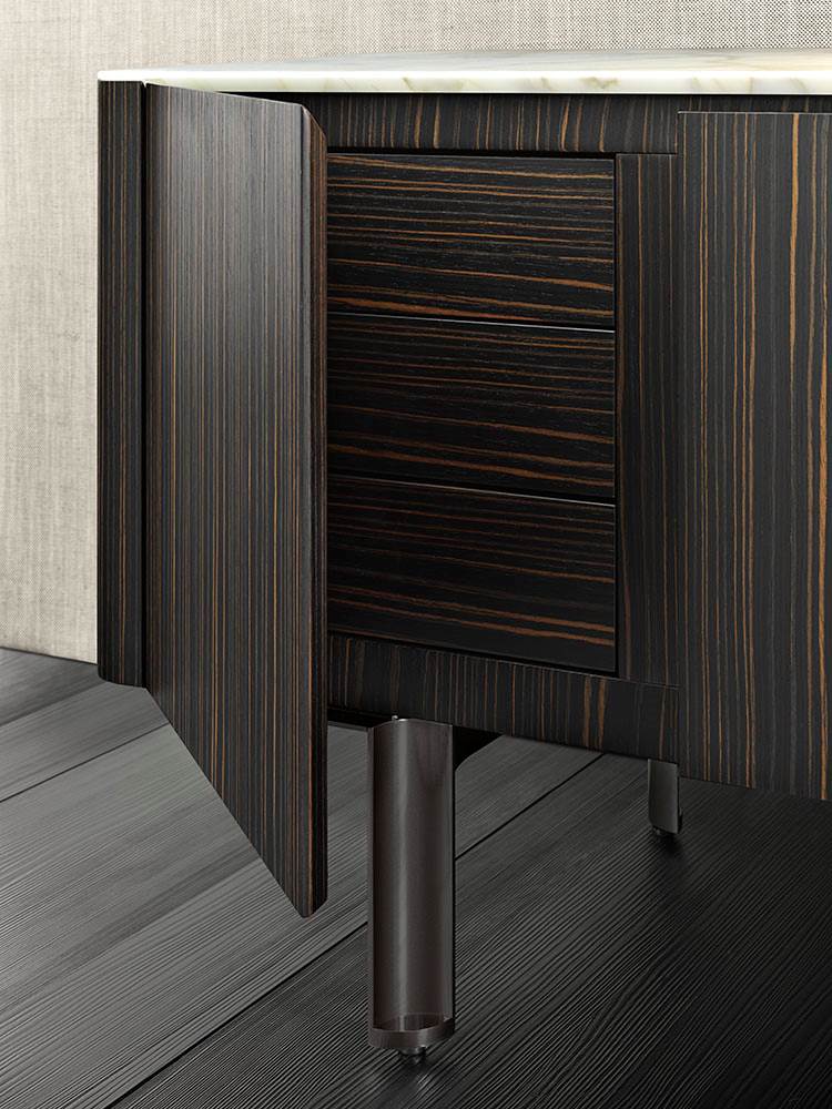 - composite ebony veneer with matt open-pore lacquer finish, door fronts and drawers in the same finish.
