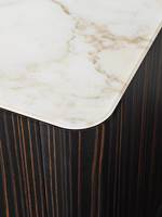 Top: Calacatta marble, 20 mm thick, shaped and partially recessed (extends 5 mm above the table top).