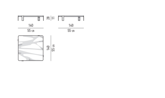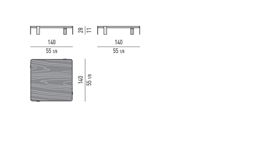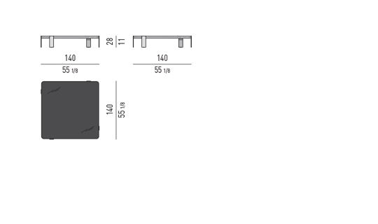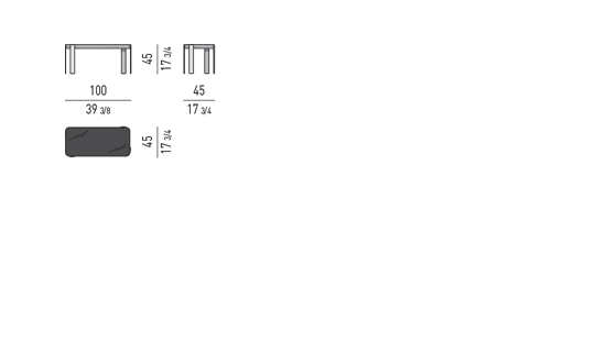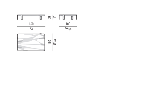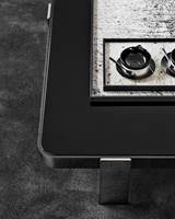 Recessed top, available in the following finishes: _ Calacatta marble, 16 mm thick; _ Black pâte de verre glass, 15 mm thick; _ in MDF, 60 mm thick, with ash veneer, open-pore Licorice colour lacquer finish. In the version with wood top, the entire structure of the top is in wood so there is no frame.