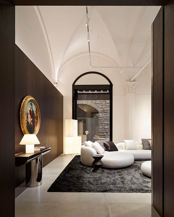 众多艺术杰作亮相其中,诠释出Giacomo Balla、Alberto Biasi、Lucio Fontana、Gualtiero Nativi等著名艺术大师的创意语言。Minotti佛罗伦萨旗舰店的现代大厅坐拥城市美景,这里摆放着一幅珍贵的16世纪圆形画作,它出自Tornabuoni Arte古典艺术藏品,在画作的映衬下,展厅与广场展开静谧的对话,并与Beato Angelico的专题展形成细腻的共鸣,将过去与当下融为一体。
