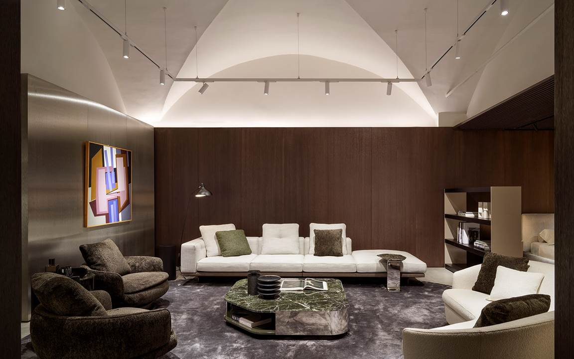 Minotti的每一个创意都充满艺术气质,它不仅融入优雅多元的家具设计,也延伸至展览空间的策划构思,从而将空间打造为个性鲜明、富有视觉效果的建筑场景,而艺术始终是其中的核心。