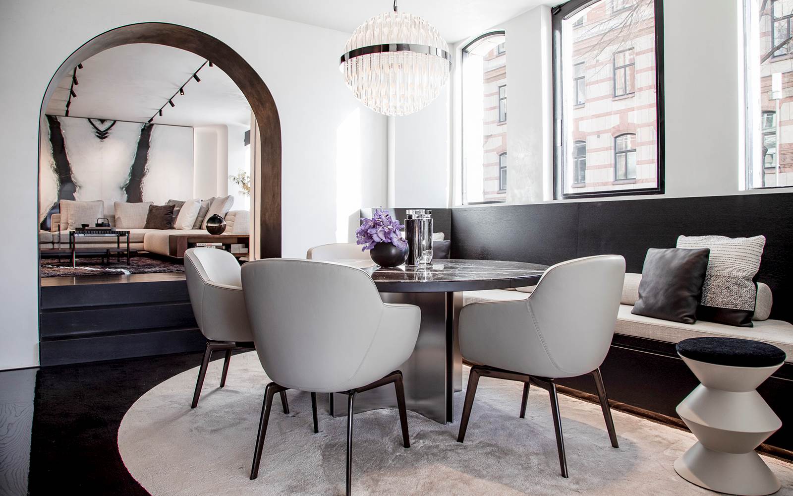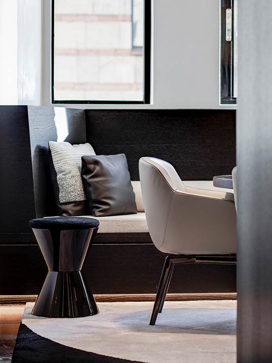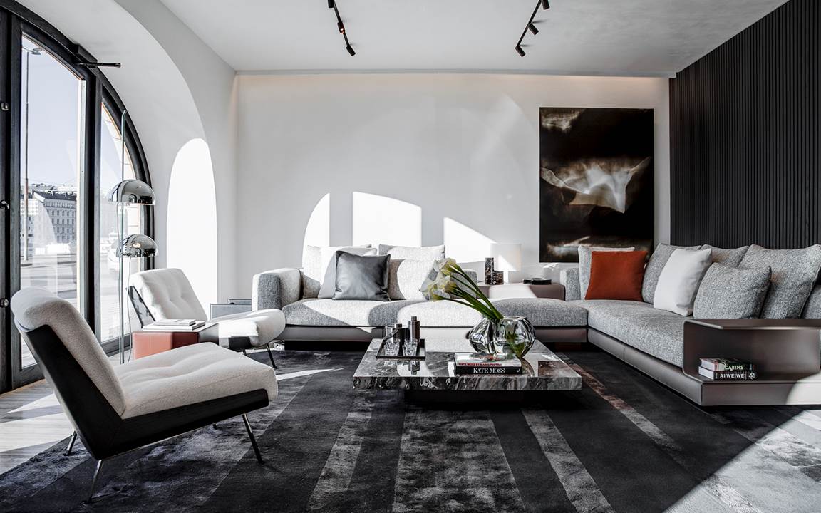 精致迷人的场景演绎鲜明的家居风格,其所运用的材质、造型、色调精妙地诠释出Minotti的优雅感;环境空间玩味冷暖色调、黑白灰之间的对比效果。