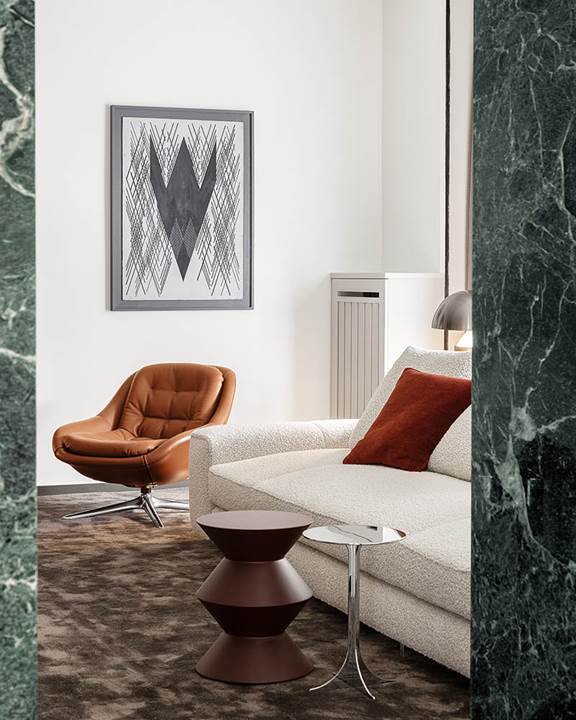 焕然一新的柏林展厅不仅展出品牌的众多畅销产品,还率先提供2025系列的预览,其中的亮点包括Hannes Peer设计的 Riley模块化沙发座椅系列、Giampiero Tagliaferri设计的优雅的Laurel扶手椅。