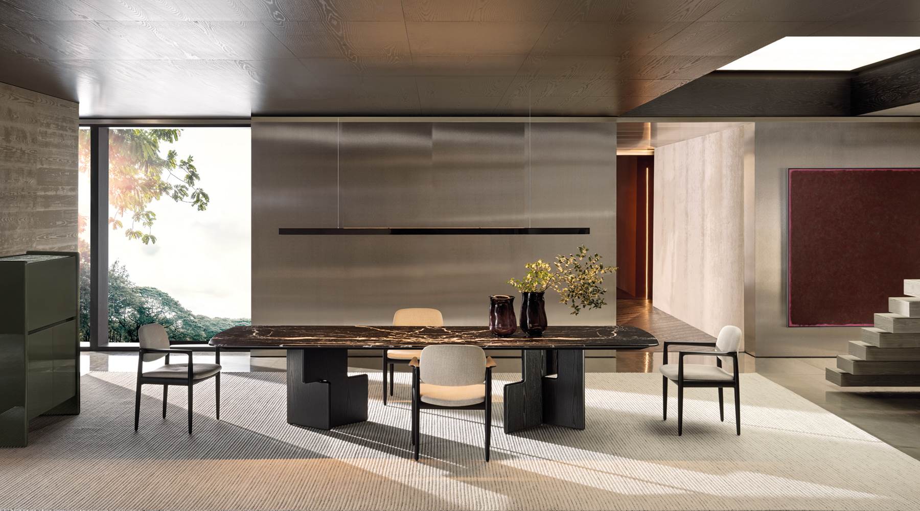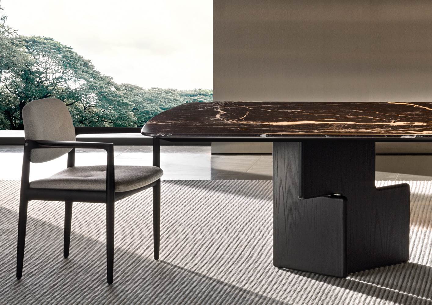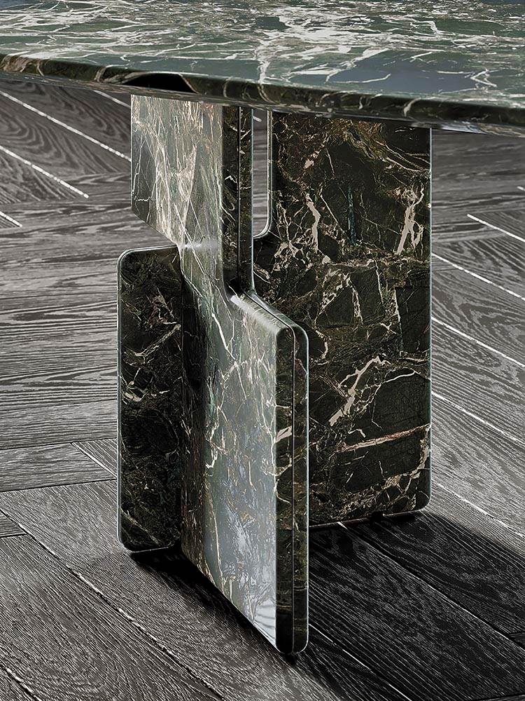 Nico餐桌的基座与桌面在材质上保持连续性,彰显其鲜明的美学风格和强烈的视觉效果,隽永的魅力将过去与现在联结在一起。