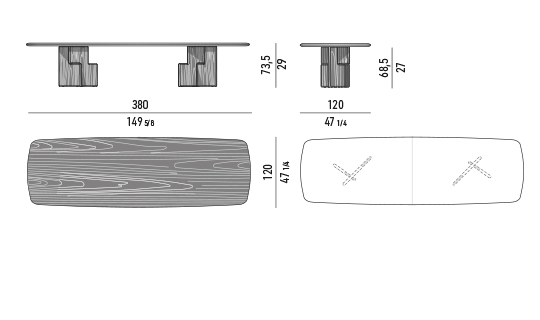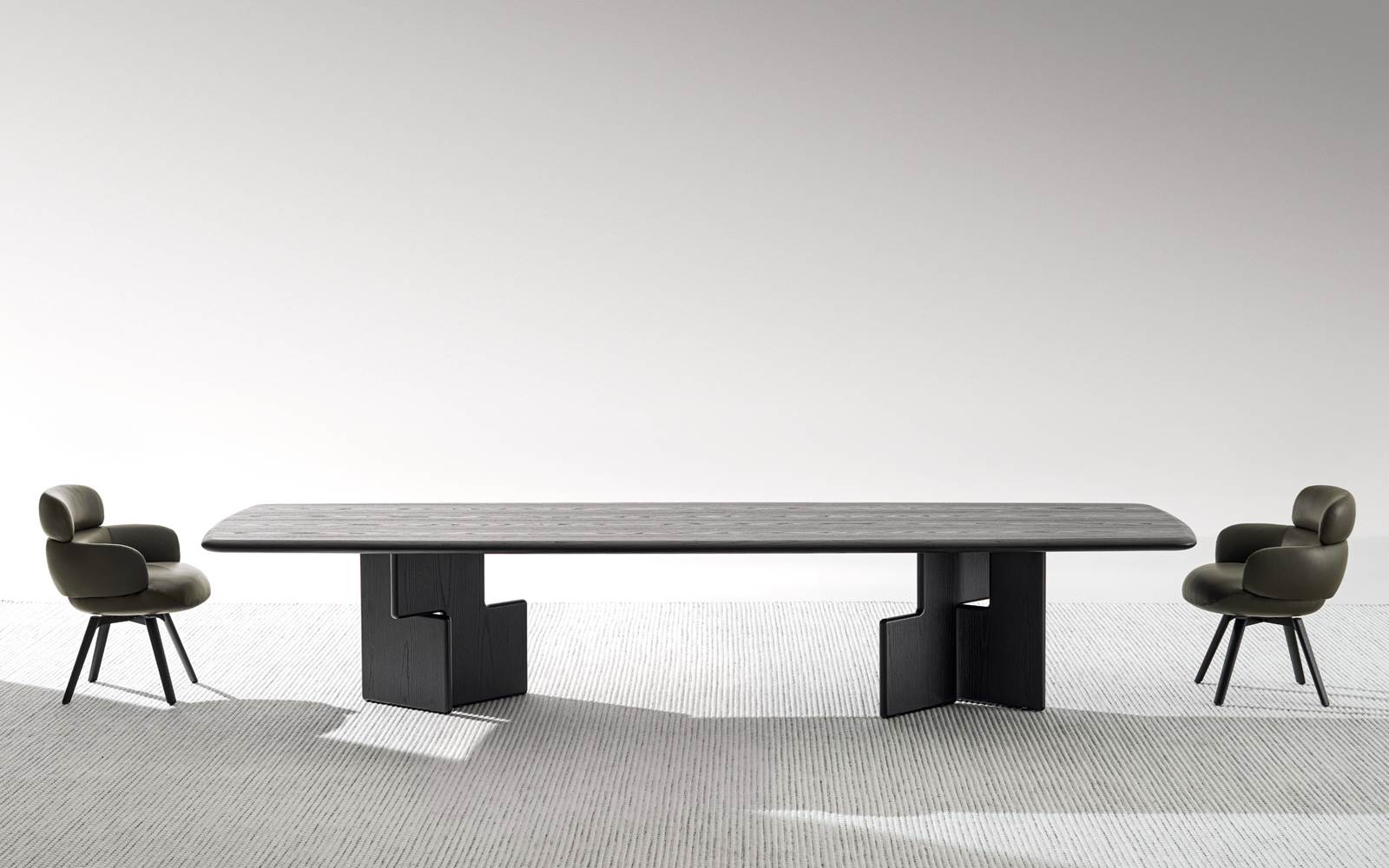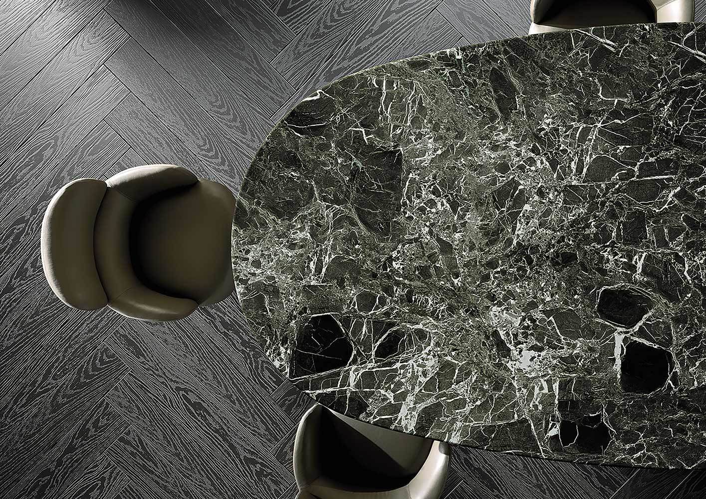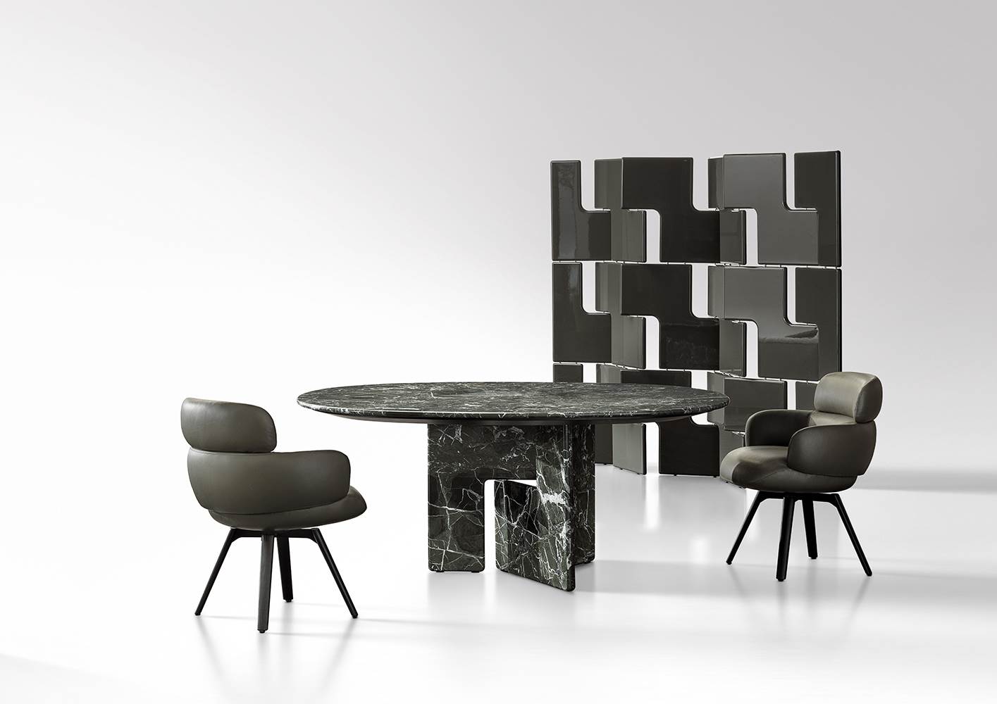 Nico餐桌的基座与桌面在材质上保持连续性,彰显其鲜明的美学风格和强烈的视觉效果,隽永的魅力将过去与现在联结在一起。