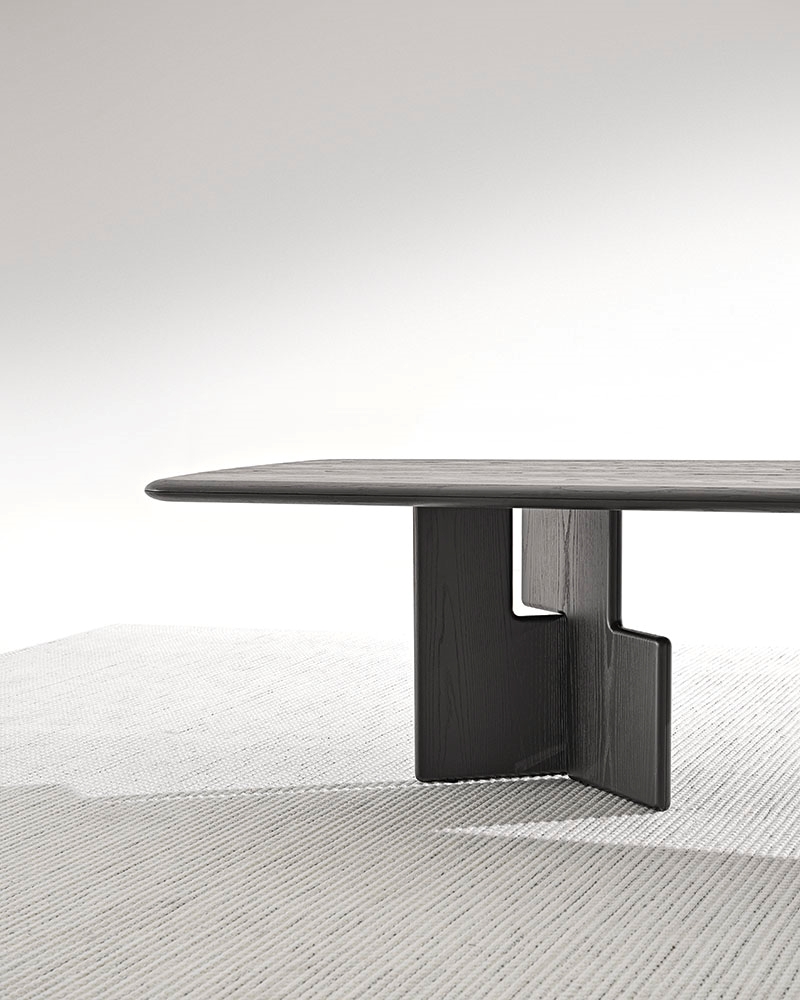 餐桌基座将不同的几何形状嵌合在一起,在虚实空间的精妙探索中实现平衡,展现出餐桌独特的设计风格。