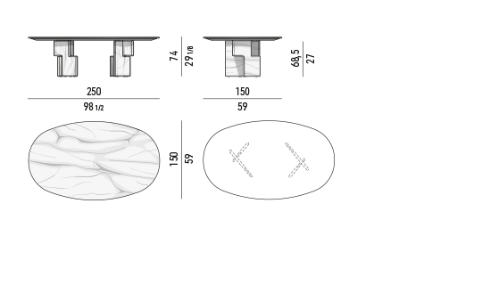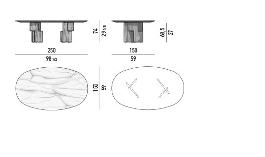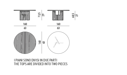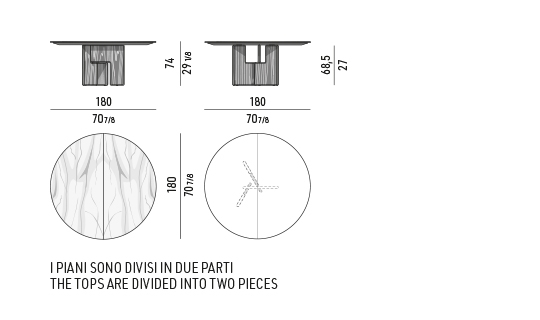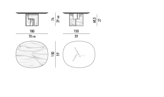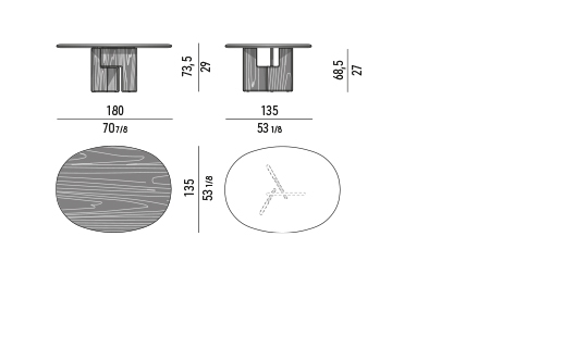 基座材质为大理石或木制,桌面配以圆润边缘,形状有圆形、椭圆形、长方形、六边形可供选择。