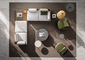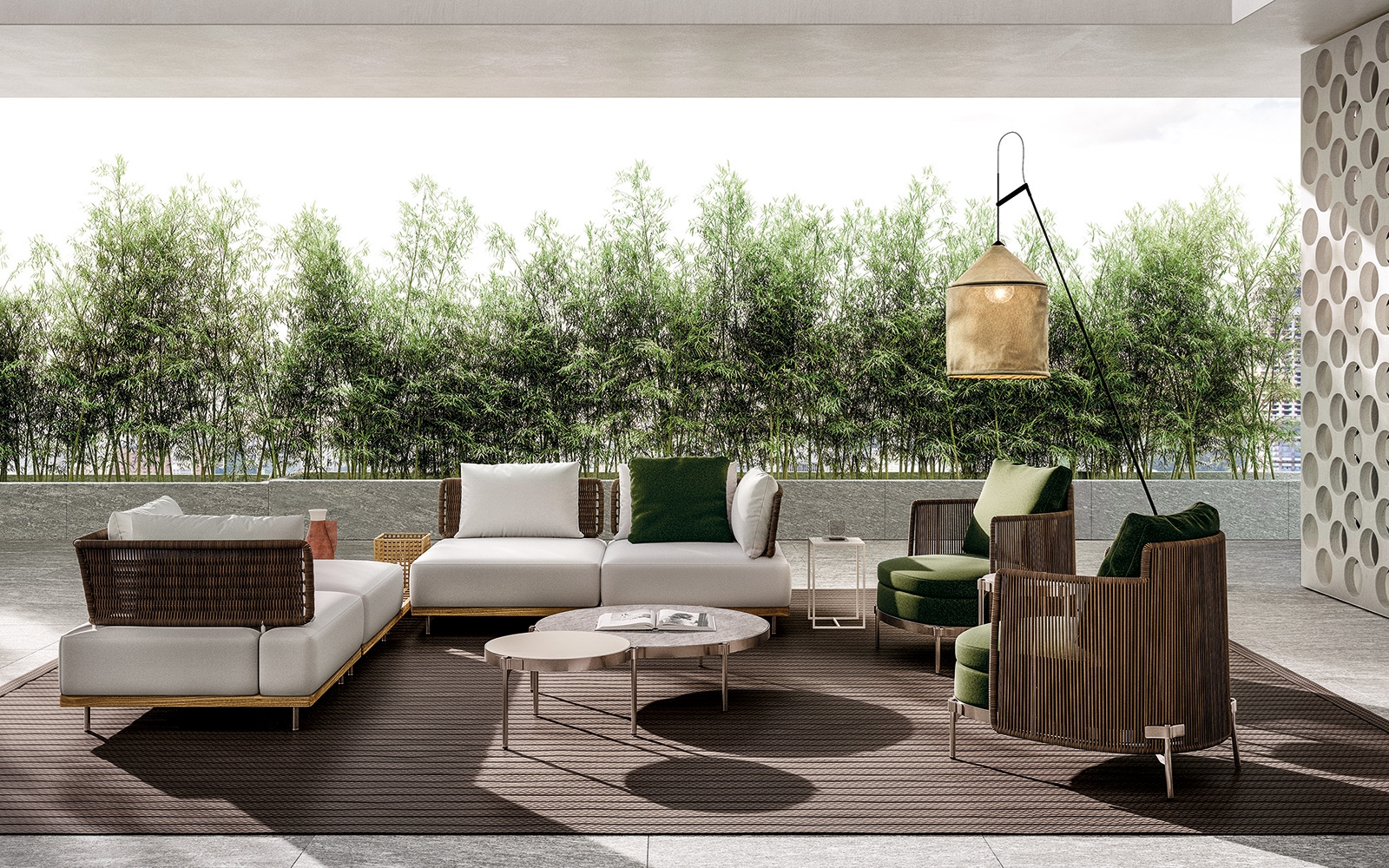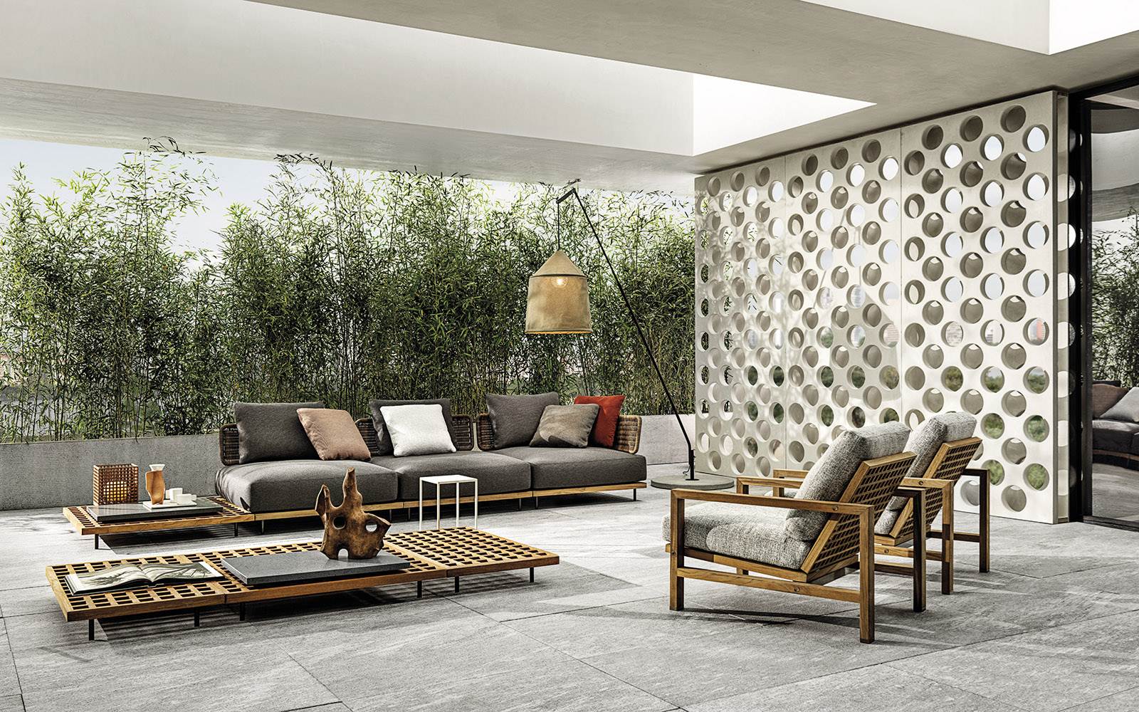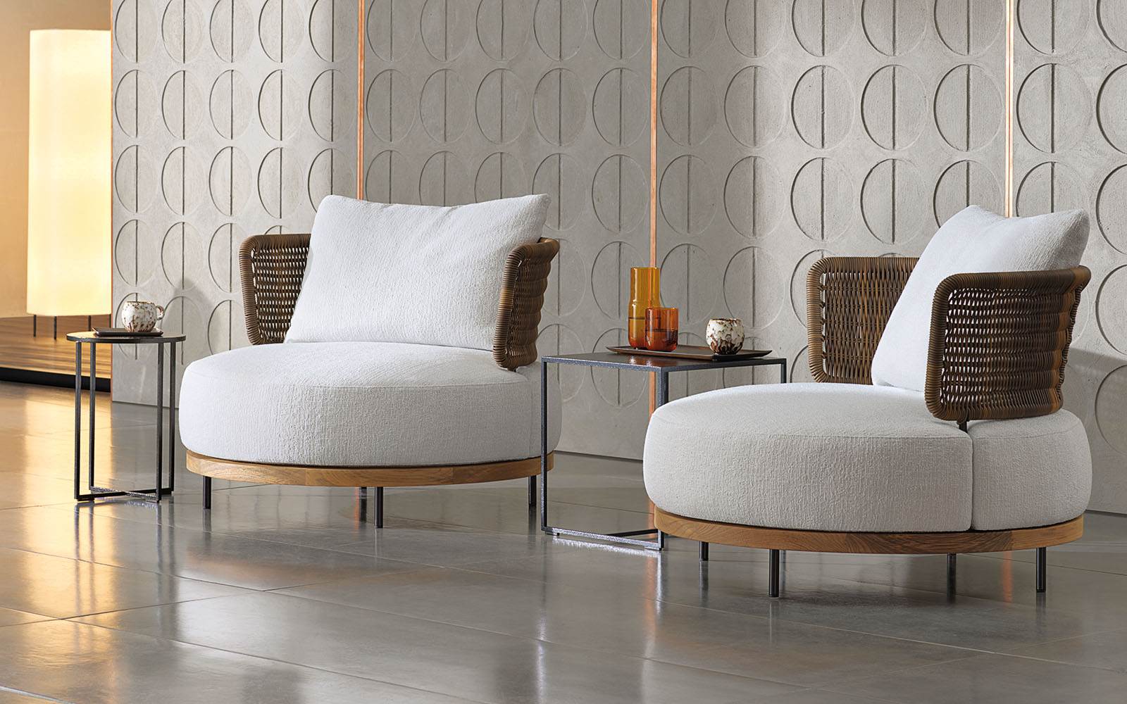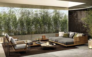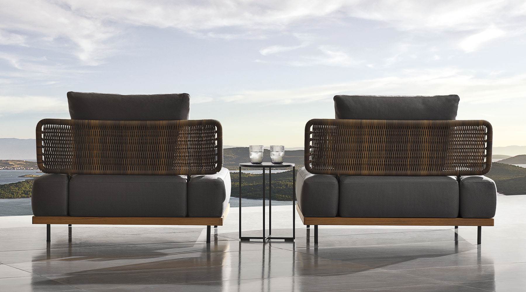 在户外环境中,组合的自由度是其特点所在,圆形扶手椅可以毫无违和感地加入其中。
