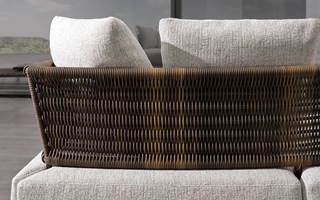 木质基座搭配舒适柔软的座垫,靠背采用不规则色调的纤维编织而成,有柳条效果的灰褐色和纯色灰褐色可供选择。