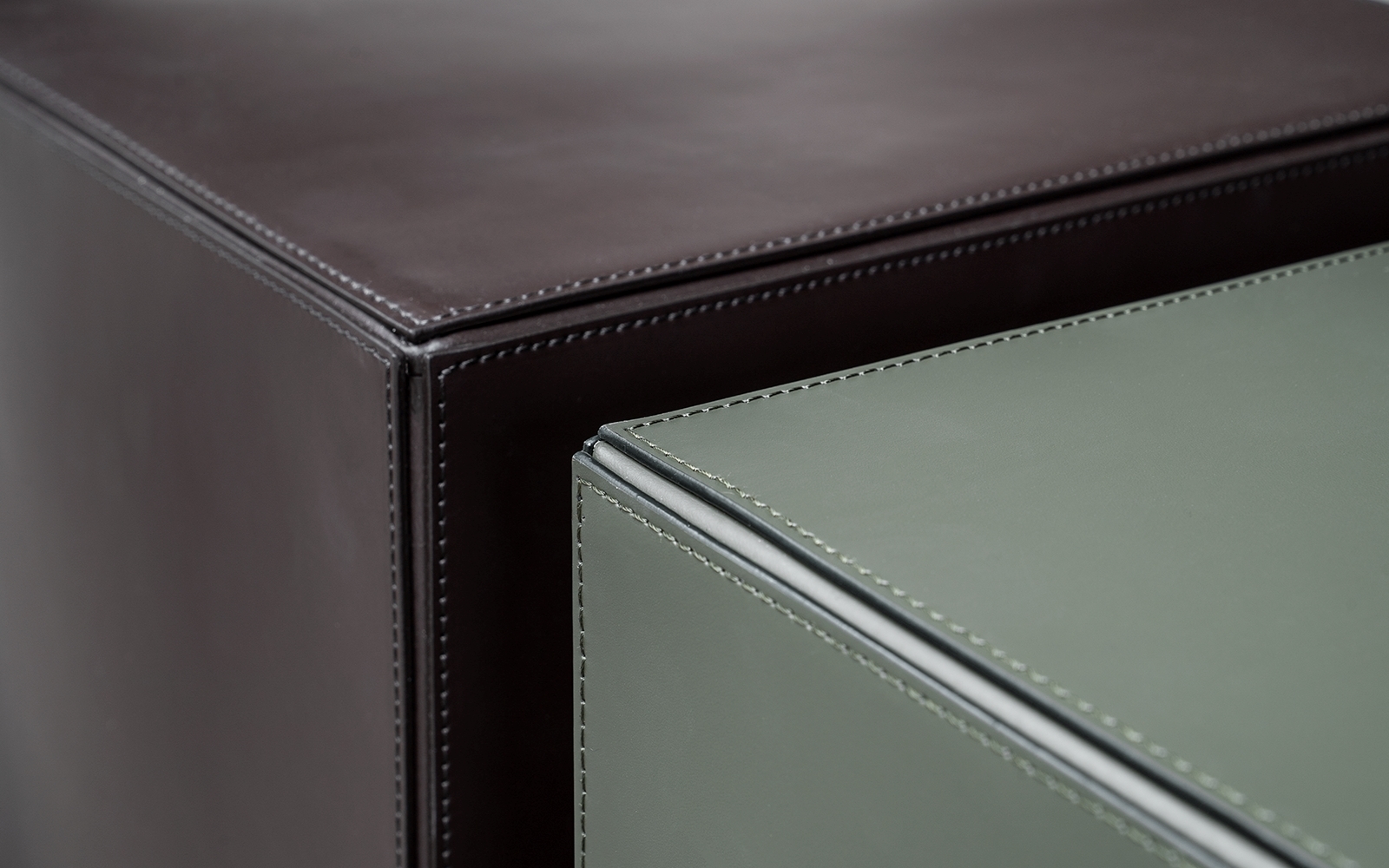 Solid Saddle-Hide是一款别致、百搭、简约的家具配件,完全采用皮革材质和精细的箱包工艺制作而成:平行六面体的每条边都饰有精致的缝线,以此来强调轮廓的优雅美感。