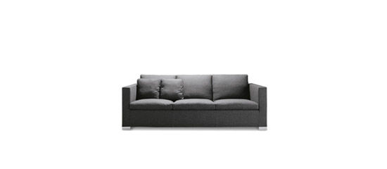 In solid wood, high resilience polyurethane foam of various densities and woven elastic straps with a high rubber content and controlled elasticity. First lining made from self-binding fibre bound to white cotton cloth. The lower part of the structure features four brushed and polished extruded aluminium strips, 47x6 mm section (exclusive Minotti design), in a brand new Brandy colour finish.