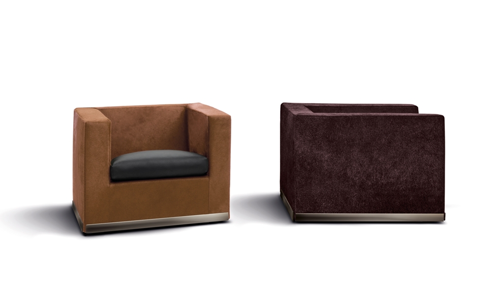 When ordering, specify the seat cushion cover according to the combinations shown below: - with a crocodile embossed leather structure, the seat cushion will always be made in Lodge or Nabuk leather; - with the structure cover in Pony Look, Zebra Look or Pony Cenere, the seat cushion will always be made in Aspen or Lodge leather. The “Brandy” finish, developed by Minotti Studio and distributed exclusively, is obtained from an extremely high quality craftmanship that highlights the polished brushing of the aluminium including possible natural shades that make each piece unique.